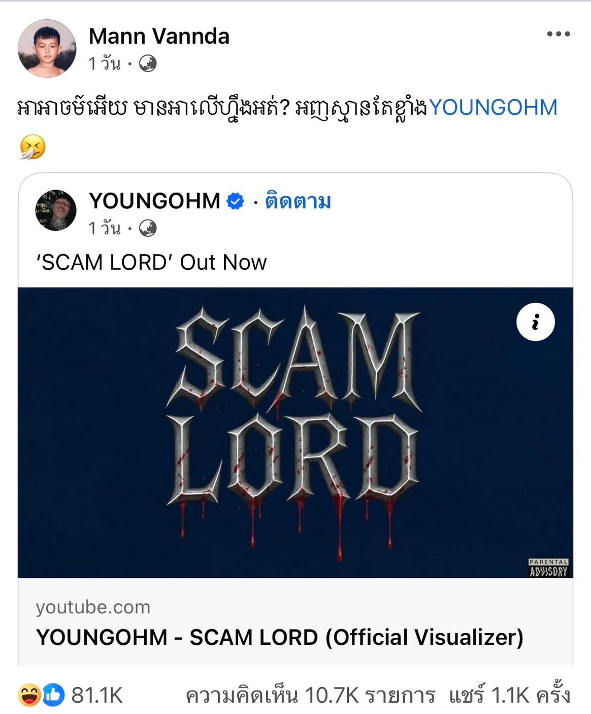 ส่วนแรปเปอร์มากความสามารถอย่าง YOUNGOHM ก็ได้ปล่อยเพลง SCAM LORD โดยมีช่วงหนึ่งของเพลง YOUNGOHM ได้ฟาดแรงถึง VannDa แรปเปอร์ชาวกัมพูชา