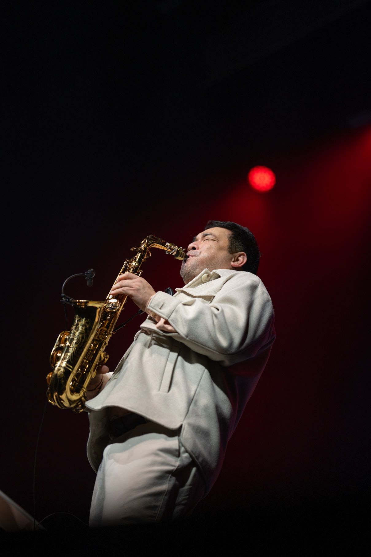 ก่อนประตูโรงละครจะเปิดอย่างเป็นทางการแฟนเพลงทยอยเดินทางมาถึง “โรงละครอักษรา คิง เพาเวอร์” ท่ามกลางบรรยากาศที่เป็นกันเอง บริเวณด้านหน้างานถูกตกแต่งอย่างเรียบง่าย มีบูธจำหน่ายของที่ระลึก และมุมถ่ายภาพที่สะท้อนคอนเซ็ปต์ “ชีวิตดนตรี” ได้อย่างชัดเจน ในพื้นที่โถงด้านหน้า เสียงดนตรีแจ๊ส บรรเลงสดจากวงดนตรีขนาดเล็กค่อยๆ เติมกลิ่นอายละมุน แฟนเพลงหลายคนหยุดฟังและถ่ายภาพก่อนเข้าสู่ฮอลล์คอนเสิร์ต