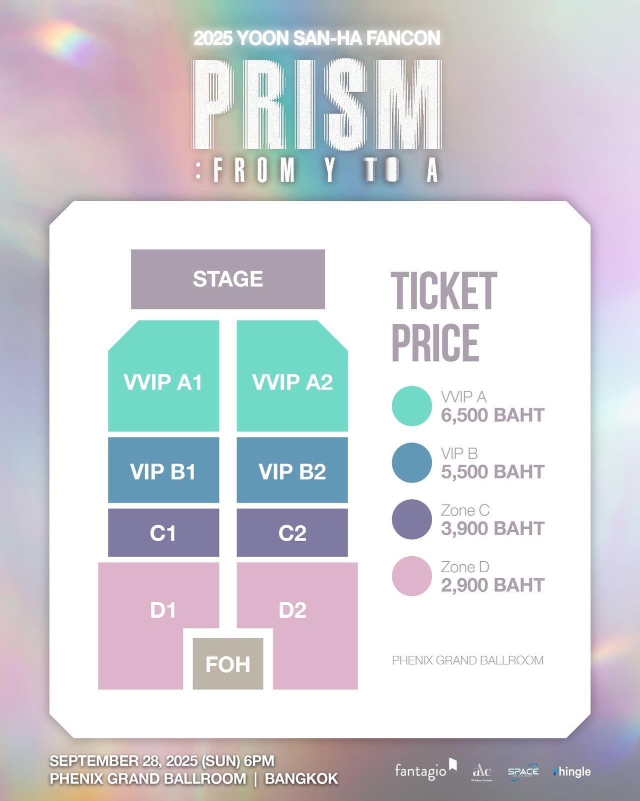 ราคาบัตรมี 4 แบบ 6,500 / 5,500 / 3,900 / 2,900 บาท พร้อมสิทธิ์พิเศษแบบจัดเต็ม เปิดขายบัตร 24 สิงหาคมนี้ ตั้งแต่เวลา 10.00 น. ทาง www.eventpass.co หรือแอป Eventpass เท่านั้น