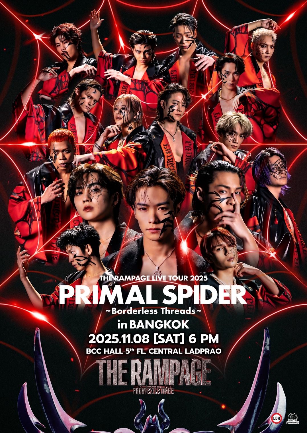 THE RAMPAGE FROM EXILE TRIBE บอยแบนด์ J-pop ชื่อดัง 16 สมาชิกจากญี่ปุ่น เตรียมสร้างปรากฏการณ์ความมันส์ครั้งยิ่งใหญ่ให้แฟน ๆ ชาวไทยเป็นครั้งแรกในประวัติศาสตร์ ด้วยคอนเสิร์ตใหญ่เต็มรูปแบบ "THE RAMPAGE LIVE TOUR 2025 PRIMAL SPIDER BORDERLESS THREADS IN BANGKOK" ซึ่งจะจัดขึ้นในวันเสาร์ที่ 8 พฤศจิกายน 2568 ณ BCC HALL ชั้น 5 เซ็นทรัล ลาดพร้าว
