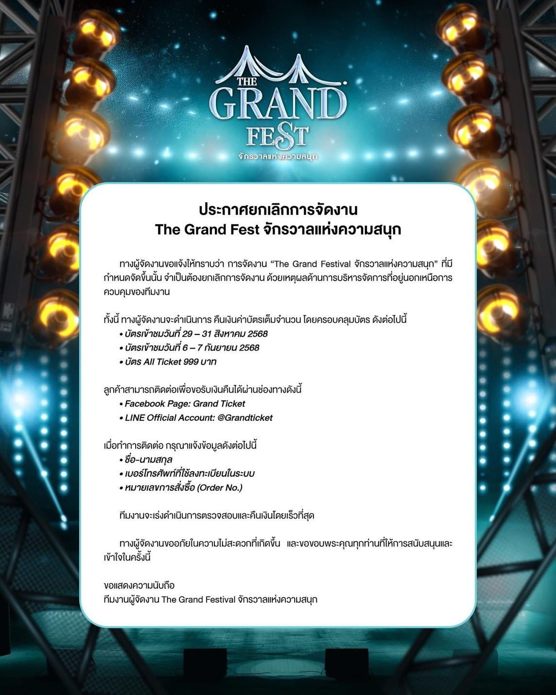 และสำหรับผู้ที่ซื้อบัตรเข้าร่วมงาน จะได้รับการคืนเงิน (Refund) โดยอัตโนมัติ ผ่านช่องทางการชำระเงินเดิมที่ใช้ซื้อบัตรโดยไม่จำเป็นต้องลงทะเบียนหรือดำเนินการใดเพิ่มเติม หากมีข้อสงสัยหรือต้องการข้อมูลเพิ่มเติม สามารถติดต่อ Ticketmelon