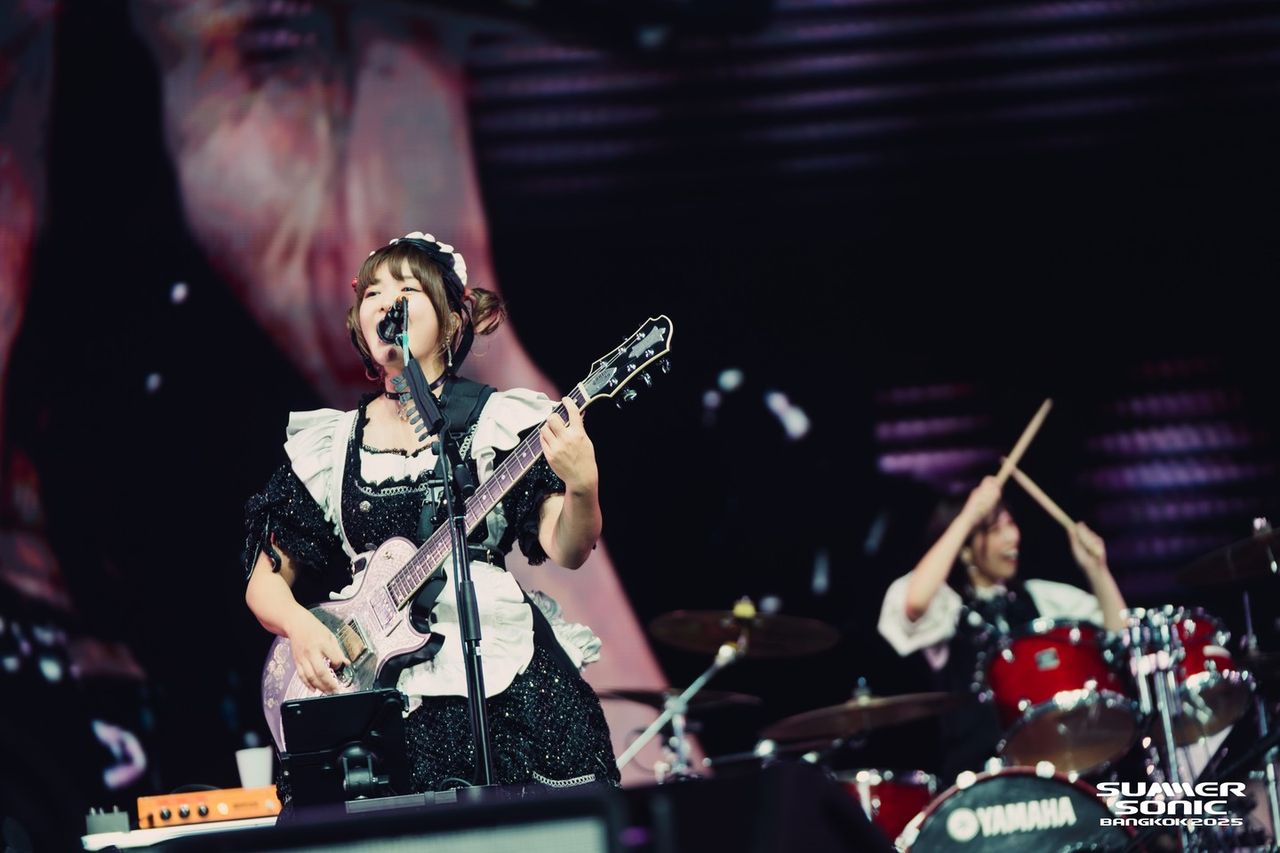 อีกไฮไลต์ที่แฟนๆ เฝ้ารอคอยก็คือการแสดงของ BABYMETAL สาวๆ ที่เต็มเปี่ยมไปด้วยพลังของเสียงกีตาร์เมทัลและจังหวะดรัมที่หนักแน่น ผสานเข้ากับท่าเต้นแบบซิงโครไนซ์สุดสมบูรณ์แบบ นี่คือการกลับมาอย่างยิ่งใหญ่ในฐานะเมนแอคต์ของ SUMMER SONIC BANGKOK หลังจากเคยสร้างปรากฏการณ์เมื่อปีที่แล้ว