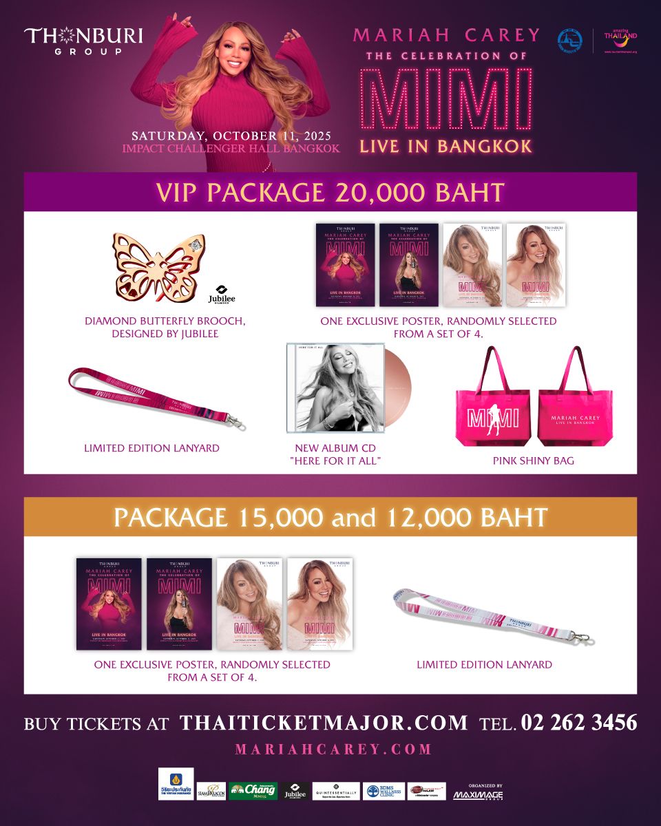 ไม่เพียงเท่านั้น สำหรับผู้ซื้อบัตรราคา 15,000 บาท และ 12,000 บาท รับโปสเตอร์ลิมิเต็ด 1 แบบ (สุ่มจาก 4 แบบ) คอนเสิร์ตครั้งนี้จึงไม่ใช่แค่การได้ฟังเพลงฮิตตลอดกาลอย่าง Hero, We Belong Together, Fantasy, Obsessed, Touch My Body แต่ยังเป็นโอกาสพิเศษในการเก็บสะสมความทรงจำที่จับต้องได้ พร้อมมีส่วนร่วมในการทำบุญครั้งใหญ่ให้กับสังคม