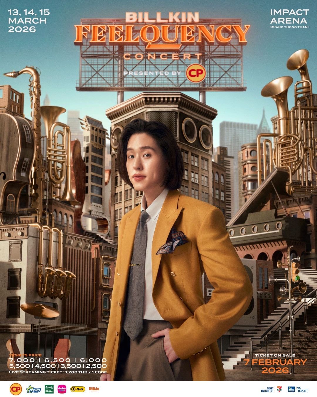 สำหรับแฟนๆ ที่ไม่อยากพลาด สามารถไปสัมผัสความสนุกใน “BILLKIN FEELQUENCY CONCERT PRESENTED BY CP” จัดขึ้นทั้งหมด 3 รอบการแสดง ในวันที่ 13, 14, 15 มีนาคม 2569 ณ อิมแพ็ค อารีน่า เมืองทองธานี จะเปิดขายบัตรในวันที่ 7 กุมภาพันธ์ 2569 ในเวลา 10:00 น. (GMT+7) - 12:00 น. (GMT+7) โดยจะเปิดจำหน่ายเฉพาะที่เคาน์เตอร์เซอร์วิสในร้าน 7-Eleven ทุกสาขาทั่วประเทศ จากนั้นเวลา 12:00 น. (GMT+7) จะเปิดจำหน่ายผ่านทั้งที่เคาน์เตอร์เซอร์วิส และ เว็บไซต์ allticket โดยบัตรมีราคา ดังนี้ 7,000 บาท / 6,500 บาท / 6,000 บาท / 5,500 บาท / 4,500บาท / 3,500 บาท / 2,500 บาท และ บัตร Live Streaming 1,200 บาท
