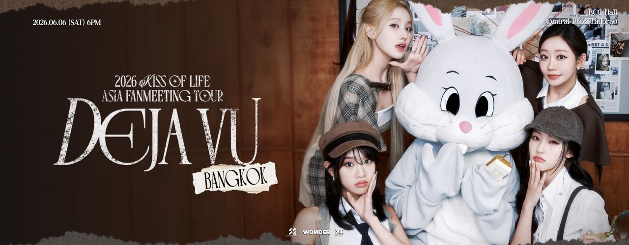 งานนี้ประชากรคิสซี่ แห่งประเทศไทย ได้เห็นตัวอย่างความเริ่ดสไตล์ตัวแม่เป็นน้ำจิ้มกันไปบ้างแล้ว ก็คงไม่ลืมที่จะเริ่ด อย่าลืมที่จะเริ่ด และอย่าลืมที่จะจองบัตรไปเจอกับ “คิสออฟไลฟ์” (KISS OF LIFE) ในงาน “2026 คิสออฟไลฟ์ เอเชีย แฟนมีตติ้ง ทัวร์ <เดจาวู> อิน แบงคอก” (2026 KISS OF LIFE ASIA FANMEETING TOUR IN BANGKOK) #KIOF_DEJAVU_inBKK ซึ่งผู้จัด โฟร์วันวันฯ จะเปิดให้เริ่มจองบัตรกันในวันเสาร์ที่ 4 เมษายน 2569 นี้ ตั้งแต่เวลา 10:00 น. เป็นต้นไป ทางไทยทิคเก็ตเมเจอร์ทุกสาขา และทางระบบออนไลน์ thaiticketmajor.com (ไม่มีระบบคิว) บัตรราคา 3,500 และ 5,900 บาท ** ติดตามรายละเอียดเพิ่มเติมได้ทางออฟฟิเชียลโซเชียลมีเดียของผู้จัดงาน @411ent