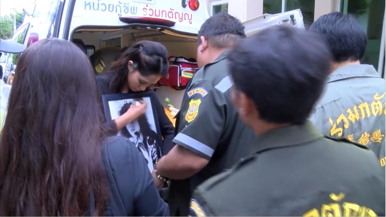 ช่วงเช้าที่ผ่านมาเจ้าหน้าที่อาสามูลนิธิร่วมกตัญญู นำโดยบิณฑ์ และเอกพันธ์ บรรลือฤทธิ์ และโบ๊ท วิบูลย์นันท์ ร่วมเคลื่อนศพร็อกเกอร์สาวเพื่อไปบำเพ็ญพิธีกรรมทางศาสนายังวัดธาตุทอง