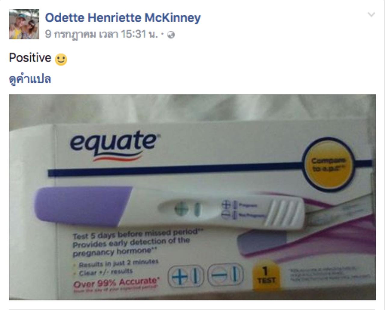 ล่าสุดก็มีข่าวดีให้ได้ยินกัน เมื่อสาวโอเด็ตได้โพสต์รูปที่ตรวจครรภ์ขึ้นสองขีดลงในเฟซบุ๊กส่วนตัว พร้อมเขียนว่า “Positive” ซึ่งเธอได้ตั้งครรภ์แล้วนั่นเอง หลายคนที่ได้ติดตามเธอ ต่างก็เข้ามาแสดงความยินดีกับว่าที่คุณแม่ยังสาวเป็นจำนวนมาก