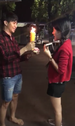 โดยในคลิปเซอร์ไพรส์วันเกิดดังกล่าว หนุ่มก้อง ได้ทำเซอร์ไพรส์น่ารัก ถือเค้กก้อนจิ๋ว และจุดเทียนเล่มใหญ่ มาเซอร์ไพรส์วันเกิดให้สาวคนสนิทที่หน้าห้องน้ำ พร้อมทั้งร้องเพลงแฮปปี้เบิร์ธเดย์และส่ายเอวไปมา อีกทั้งยังอวยพรวันเกิดยาวเหยียดว่า
