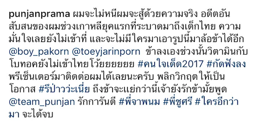 ช่วงนั้นวิตามินกับโบท็อกซ์ยังไม่เข้าไทยโว้ยยยยยย#คนใจเด็ด2017 #กัดฟังลง พรีเซ็นเตอร์มาติดต่อผมได้เลยนะครับ พลิกวิกฤตให้เป็นโอกาส#รึป่าวว่ะเนี่ย ถึงข้าจะเเย่กว่านี้เจ้ายังรักข้ามั้ยพูด@team_punjan รักการันตี #พี่จาพนม #พี่ชูศรี#ใครอีกว่ามา จะได้จบ”