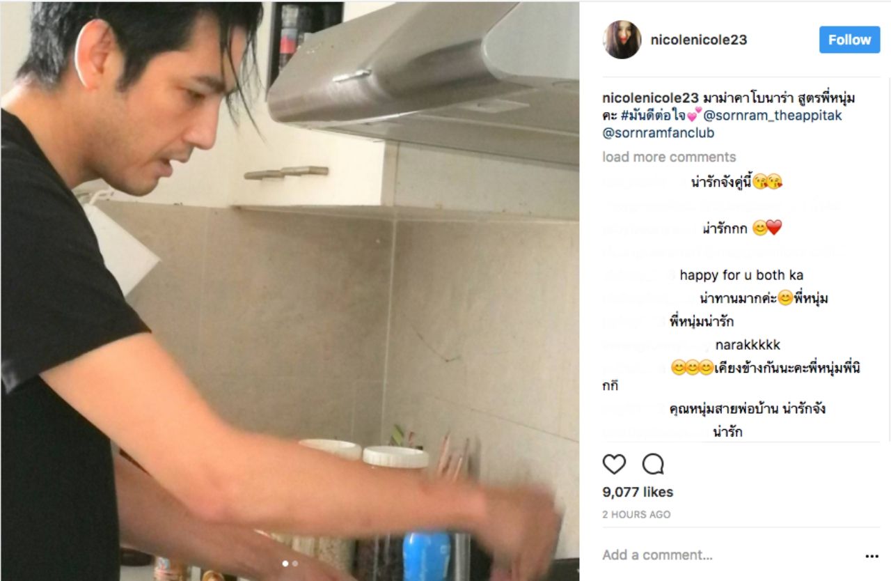 ล่าสุด หลังจากเสร็จสิ้นงานโศกเศร้า พี่หนุ่มก็ได้เข้าครัวโชว์ฝีมือทำอาหารให้แฟนสาวรับประทาน ซึ่งไม่เคยมีใครเห็นโมเมนต์นี้อย่างแน่นอน แม้จะเป็นเมนูง่ายๆ อย่าง มาม่าคาโบนาร่า แต่รู้สึกว่าอาหารจานนี้ต้องอร่อยแน่ๆ เห็นได้จากท่าทางการกินของสาวนิโคลแล้ว ดูแฮปปี้กับอาหารตรงหน้ามาก และดีต่อใจจริงๆ.