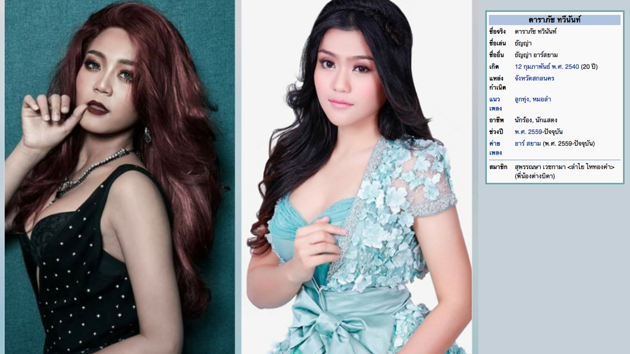 ลือสนั่นโซเชียล! เมื่อมีมือดีค้นประวัติในเว็บไซต์วิกิพีเดีย ของนักร้องสาวชื่อดัง ธัญญ่า อาร์สยาม ค่ายอาร์เอส เจ้าของผลงานเพลง แอบฮักอ้าย และยังเป็นคู่จิ้นเน็ตไอดอลอีสาน เบิ้ล ปทุมราช อีกด้วย