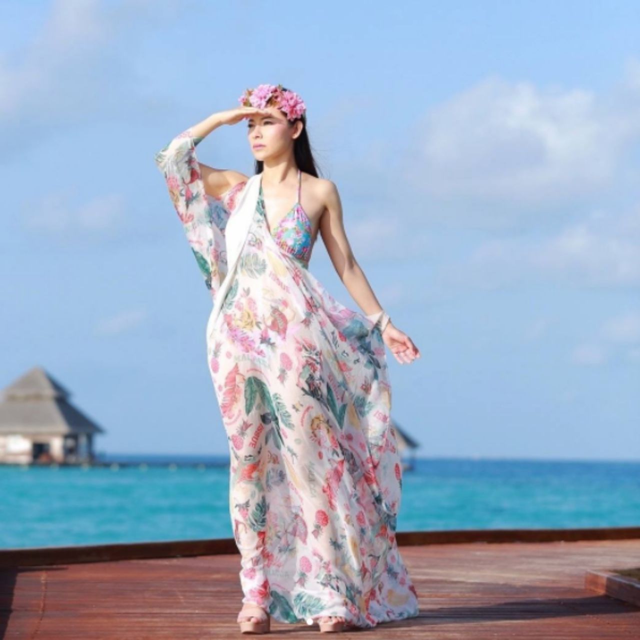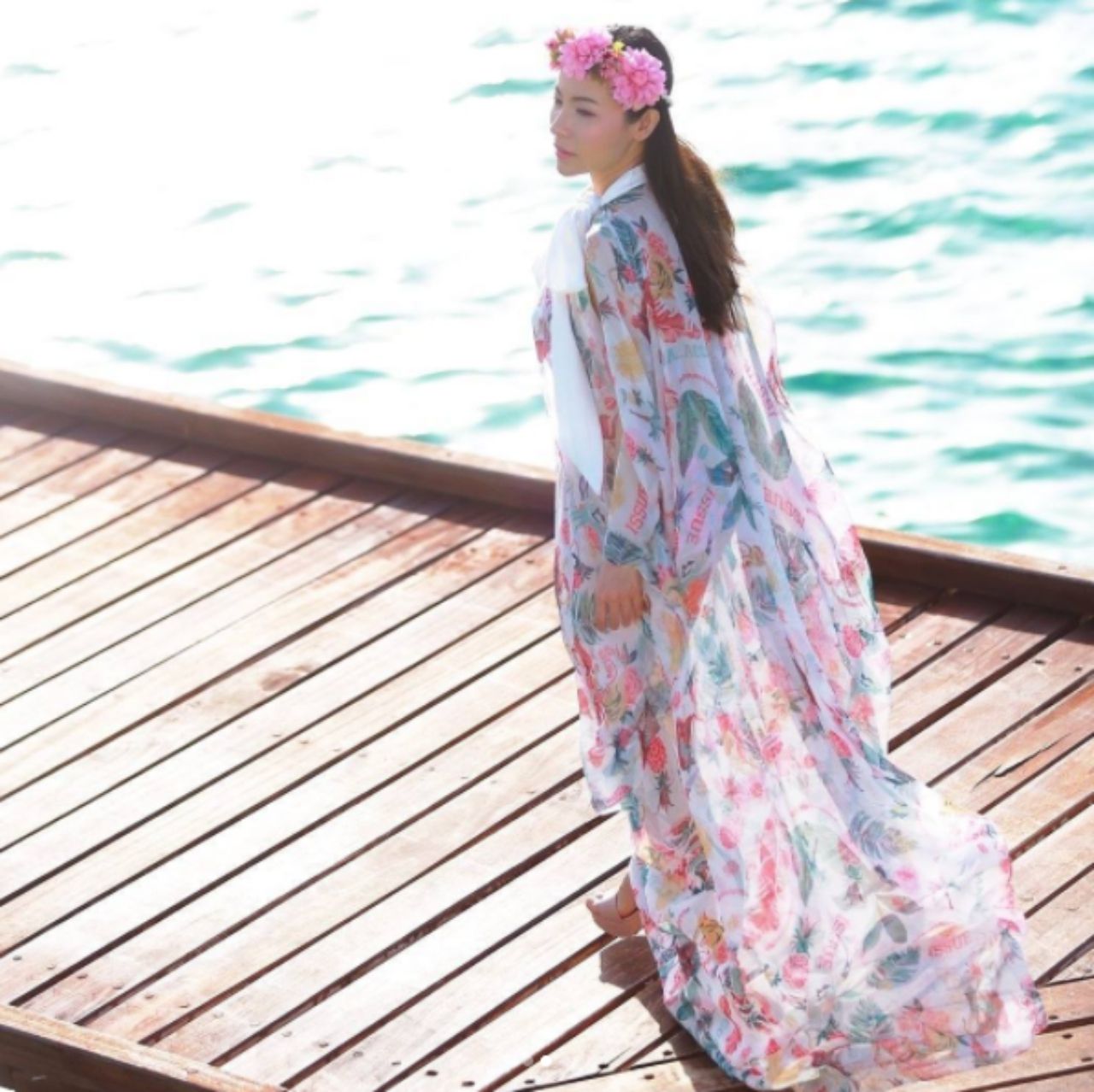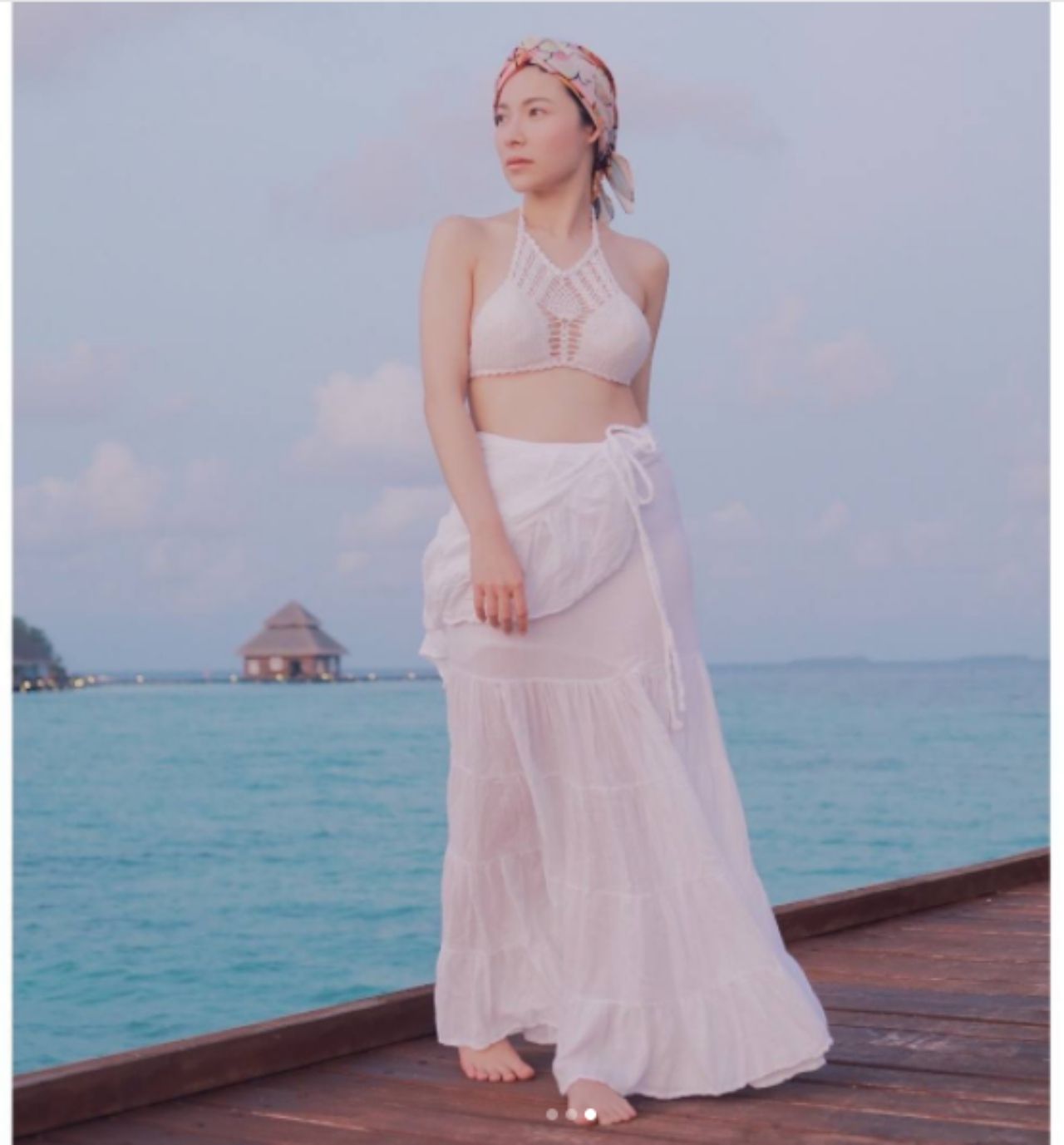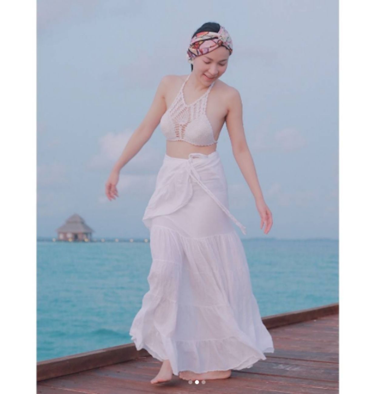 แต่ไปเที่ยวทั้งทีจะมีรูปมาอวดแค่นี้ก็คงไม่ใช่ เพราะภาพเซตต่อมาที่สาวกระแตปล่อยออกมาให้แฟนๆ ได้ดู เป็นภาพชุดเดรสสีขาวดูหวานๆ แต่แอบเปรี้ยวเข็ดฟันไม่น้อย เพราะเจ้าชุดนี้แหวกด้านหน้าโชว์ผิวเนียนๆ และเผยผิวข้างหลังอวดรอยสักยันต์ 5 แถว