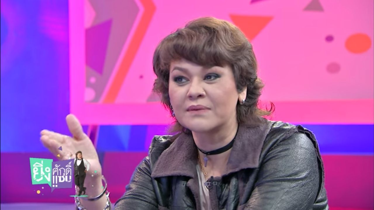 (กี่ขวบตอนที่เขาถาม?) เนี่ยๆ 8 ขวบ เราก็เลยมองหน้าเขา โอเคเดี๋ยวหม่ามี๊เล่าให้ฟังนะ ที่เห็นเนี่ยตอนนั้นหม่ามี๊ทำงานมีอาชีพเป็นนางแบบนะ แล้วก็นางแบบเนี่ยรับงานมาถ่ายหมดลูก มีเสื้อผ้าไม่มีเสื้อผ้า ถ่ายหมด แต่ตอนที่ยืนอยู่นั้นนะ หม่ามี๊ยังไม่มีหนูเลย หม่ามี๊ยังไม่ได้เป็นแม่คนเลย และนั่นคืออาชีพที่หม่ามี๊ทำงาน หลังจากนั้นมาหม่ามี๊ก็มาทำงานร้องเพลง หนูเติบโตมาก็เห็นหม่ามี๊ทำอาชีพร้องเพลงมาตลอด มันคืออาชีพในการเลี้ยงชีพลูก กับลูกสาวก็ให้คำตอบเหมือนกัน เขาก็มาถามเหมือนกัน”