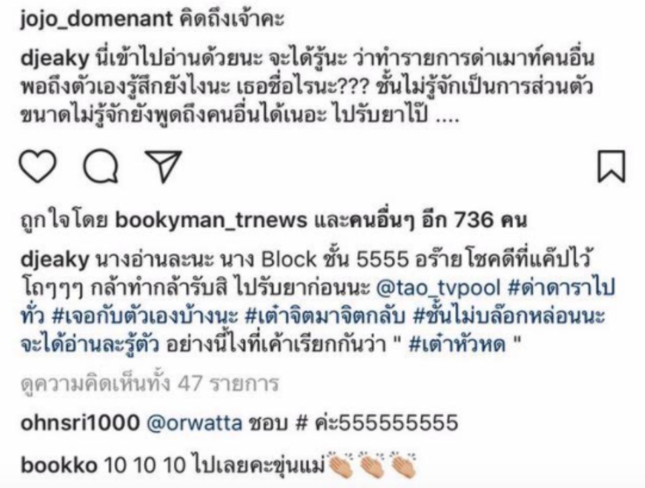 8. นี่คือตัวอย่างเวลาโดนด่า หรือวิจารณ์บ้างเป็นไง เพราะชั้นก็คิดแบบนี้ ว่าเธอหน้าเหียกกว่า แก่กว่า และทัศนคติลบ @tao_tvpool #เต๋าหัวหด"