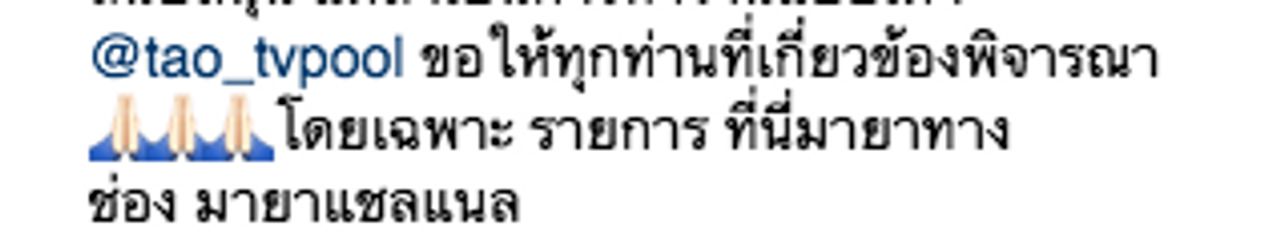 7. การทำอะไรก็ตามอยู่ในขอบเขต ไม่ล้ำเส้น ไม่ทำให้ใครเดือดร้อน ผมสนับสนุน แต่ถ้าเป็นการทำงานแบบเต๋า @tao_tvpool ขอให้ทุกท่านที่เกี่ยวข้องพิจารณา โดยเฉพาะรายการ ที่นี่มายา ทางช่อง มายาแชลแนล".