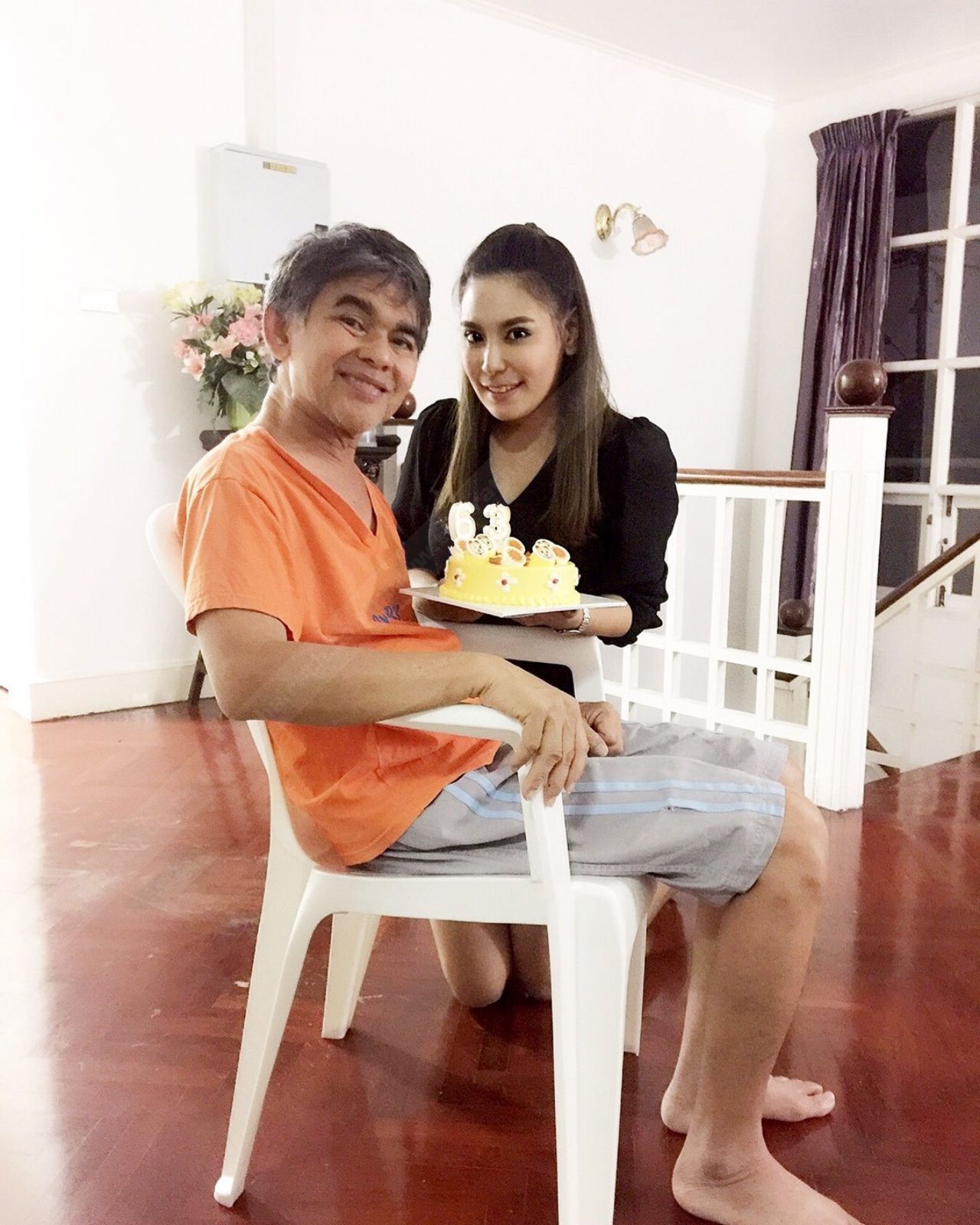 มีเพื่อนๆ ดาราเก่ามาเยี่ยมคุณพ่อด้วย? "ตั้งแต่ออกข่าวไปก่อนหน้านี้ ก็มีเพื่อนๆ ของป๋าที่สามเสน มาดูแลมาเยี่ยม พาไปเที่ยวกันเยอะค่ะ หรืออาหม่อม (รุจิเรข พักตระเกษตริน) ก็จะคอยถามตลอดค่ะ ก่อนหน้านี้ทางสมาคมนักแสดงอาวุโส ก็มอบเงินช่วยเหลือให้ด้วย 10,000 บาท และก็มีป้าหน่อย (ณัฐินี สิทธิสมาน ที่มักจะได้รับเล่นบทเป็นปอบ) ที่คอยหมั่นมาเยี่ยมตลอด ทุกคนที่มาเยี่ยมป๋า ทำให้ป๋ามีกำลังใจขึ้นเยอะเลยค่ะ กำลังใจสำคัญมากๆ ขอบคุณทุกๆ คนเลยนะคะ"
