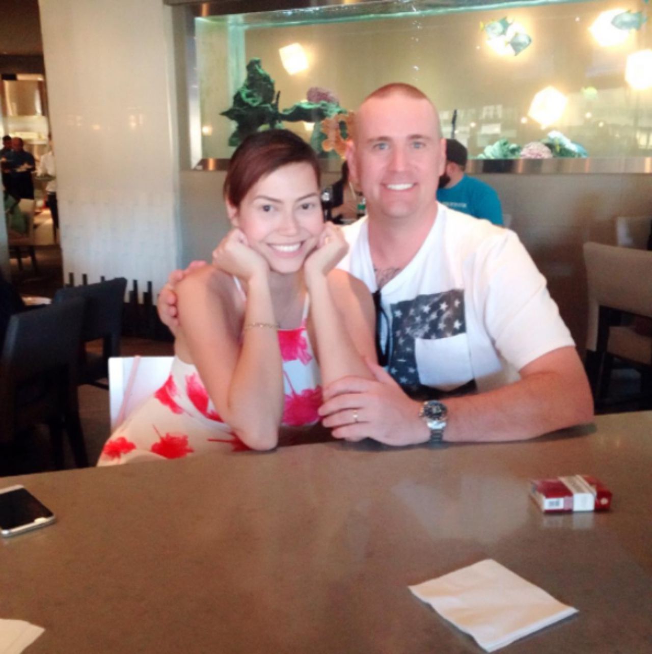 หนูเจอเขาที่นี่ แล้วตัดสินใจยังไงถึงเลือกเขา? “เขาจีบหนูไงคะ เขามาจีบหนู ก็ไปเจอกันที่ร้านอาหาร ไปนั่งทานข้าว หนูไปทานข้าวกับเพื่อนสนิทหนู เขาก็เดินเข้ามาบอกว่า ไทยเลดี้โซบิ้วตี้ฟูล (หัวเราะ) เขานึกว่าหนูพูดภาษาอังกฤษไม่ได้ เขาก็เลยมาแบบนี้ หนูก็เลยขำ ก็เลยบอกตลกดีนะ เธอไม่คิดว่าฉันจะพูดภาษาอังกฤษได้เหรอ หลังจากนั้นก็คุยกัน เขาก็พาไปเดตกันไปอะไรกัน”