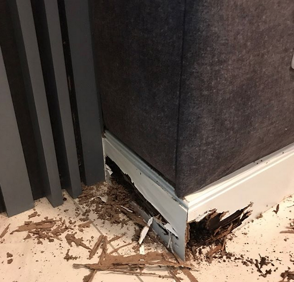 “แก!! อีปลวกบ้า มากินบ้านชั้นทำไม!!!!! ไม่รู้กินไปถึงไหน?! #เสียใจอ่ะ” พร้อมกับลงรูปที่ปลวกมาแทะกินบ้านใหม่ของตนหลายรูป ซึ่งมีความเสียหายค่อนข้างหนักพอสมควร