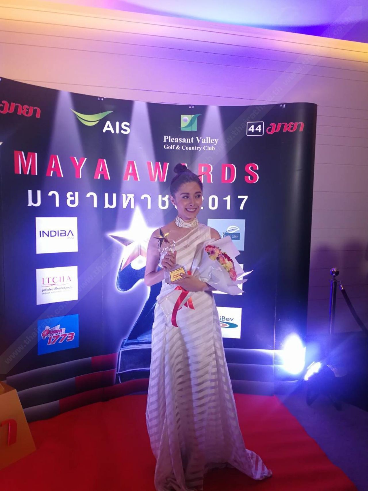 "ขอบคุณผู้จัดทั้งหลาย โดยเฉพาะโพลีพลัสที่เชื่อมั่นในตัวหนู ให้หนูเล่นละครเป็นเรื่องแรก ถือว่าเป็นจุดเริ่มต้นให้หนู และขอบคุณทีมป๊าสั่งย่าสอน พี่เตอร์ รฤกฤกษ์ ที่ให้บทแม่พะยอมกับหนูค่ะ และขอบคุณทีมมายาชาแนลทุกท่านที่จัดเวทีคุณภาพ ขอบคุณแฟนคลับและทุกๆ ท่านที่ติดตามผลงานช่วยกันโหวตให้หนู และขอบคุณพี่ๆ สื่อมวลชนที่เมตตาให้พื้นที่ข่าวหนูด้วยค่ะ หนูดีใจที่สุดเลยรางวัลนี้ เพราะเป็นรางวัลแรกในชีวิตการแสดงของหนู ก็จะพยายามพัฒนาให้ดีขึ้นๆ ไป กราบขอบพระคุณอีกครั้งค่ะ".