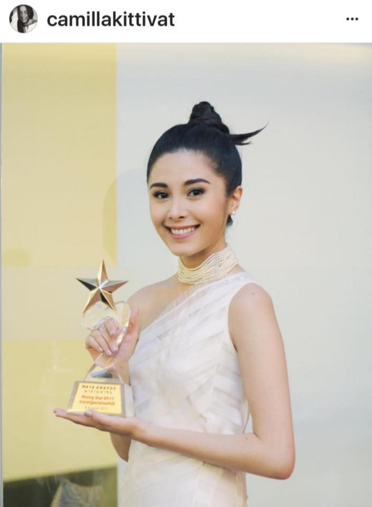 ไม่เกินคาด เริ่มมาแรงทะลวงใจ คว้าไปแล้วสวยๆ กับรางวัลไรซิ่งสตาร์ Rising Star ดาราหญิงมาแรงแห่งปี มายาอวอร์ด Maya Award 2017 มิลลี่ คามิลล่า กิตติวัฒน์ จากละครเรื่อง เรือนพะยอม ผลงานกำกับโดย เตอร์ รฤกฤกษ์ กัลย์จาฤก ลูกชายของ ต๊ะ นิรัตติศัย กัลย์จาฤก เรือนพะยอม ยังคว้าไปอีกหนึ่งรางวัลคือ บทละครโทรทัศน์ยอดเยี่ยม