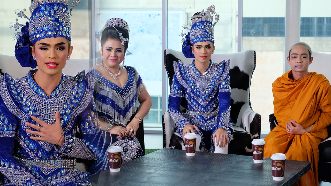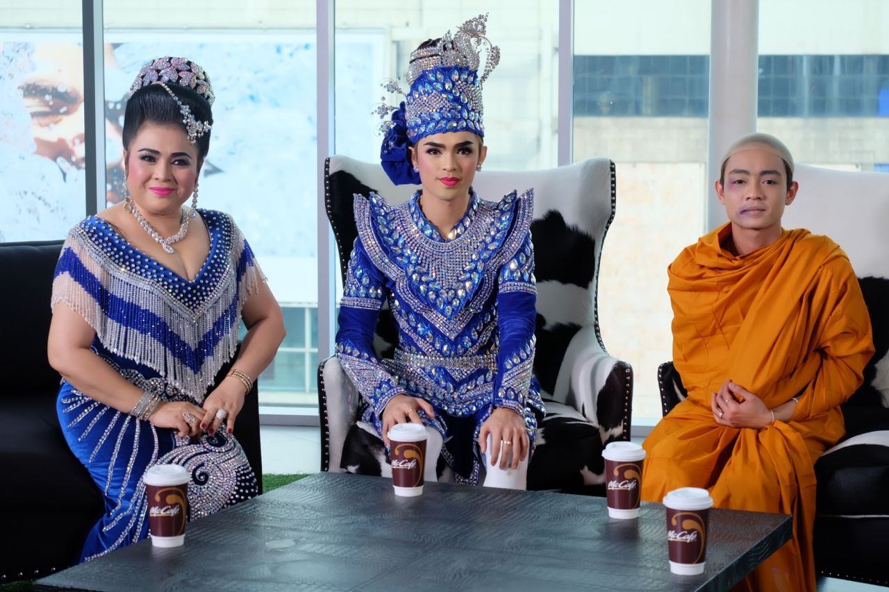 ทำไมถึงแต่งเป็นพระสงฆ์? แบงค์ “เพราะเรามีการแสดงแบบนี้มาตั้งแต่สมัยปู่ย่าตายายแล้วครับ เราไม่ใช่เพิ่งจะมาแต่งเรื่องราวในตอนนี้ การแสดงแบบเดิมเป็นยังไง เราก็ยังแสดงแบบนั้น แต่แค่เราจะปรับเปลี่ยนให้ทันยุคทันสมัยมากขึ้นครับ อะไรที่เป็นมุกเกร็ดเล็กเกร็ดน้อย เราก็เอามาใส่เพิ่ม”