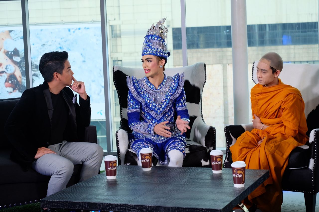 คนที่น่าหนักใจกว่า ก็น่าจะเป็นน้องเบลล์ ที่ใส่จีวรพระ ที่โดนวิจารณ์อย่างหนัก? เบลล์ “ตอนนี้มึนคอมเมนต์อยู่เลยครับ คือผมรับหน้าที่ตลก แล้วสิ่งที่ทำตอนนี้คืออยากให้คนดูมีความสุขเท่านั้นเอง ในปีนึงเราจะแสดงที่วัดเยอะมาก ประมาณ 95% ที่เราแสดงออกไป