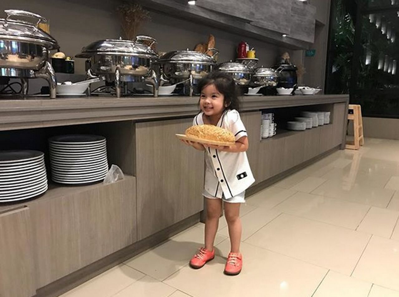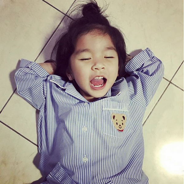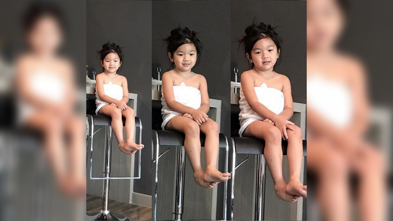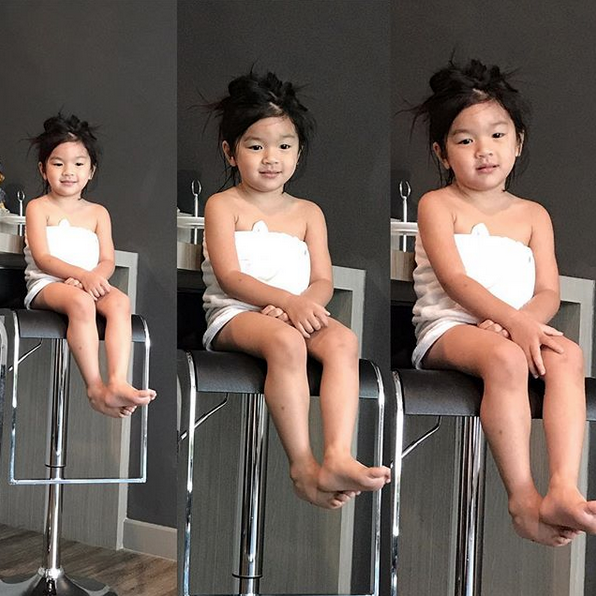 และรูปล่าสุดแม่โบว์ได้ลง เป็นรูปที่น้องมะลินุ่งผ้าเช็ดตัวเป็นกระโจมอกนั่งบนเก้าอี้ตัวสูงอย่างเรียบร้อยเพื่อให้แม่โบว์ถ่ายรูป ซึ่งก่อนจะยิ้มหวาน หน้าตาของมะลิก็ดูจะยังไม่ค่อยตื่นเท่าไหร่ แต่พอแม่โบว์นับ 1 2 3 เท่านั้น น้องมะลิก็ยิ้มหวานอย่างที่เห็น