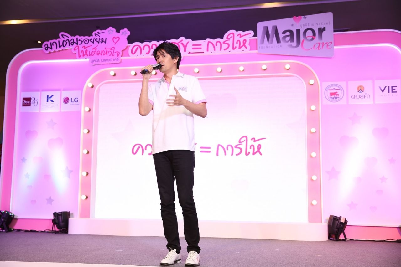 ที่มาร่วมสร้างความสุข สนุก และแจกของรางวัล พร้อมจำหน่ายเสื้อ และให้ลุ้นกับเกมสนุกๆ อย่างการสอยดาว ซึ่งรายได้หลังหักค่าใช้จ่ายทางมูลนิธิ เมเจอร์ แคร์ จะนำไปใช้สร้างห้องหนังเพื่อการเรียนรู้