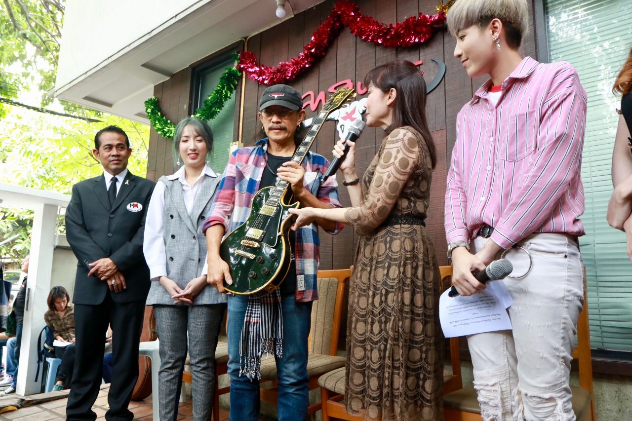 แอ๊ด คาราบาว "ขอบคุณมากครับ สำหรับกีตาร์ เป็นตัวรักของพี่เป้า ตอนที่พี่เป้ายังมีชีวิตอยู่ เราคุยกันว่าพี่มีกีตาร์อยู่ตัวหนึ่งที่รักมาก แต่ไม่ได้ใช้ พี่เค้าก็ยกให้"