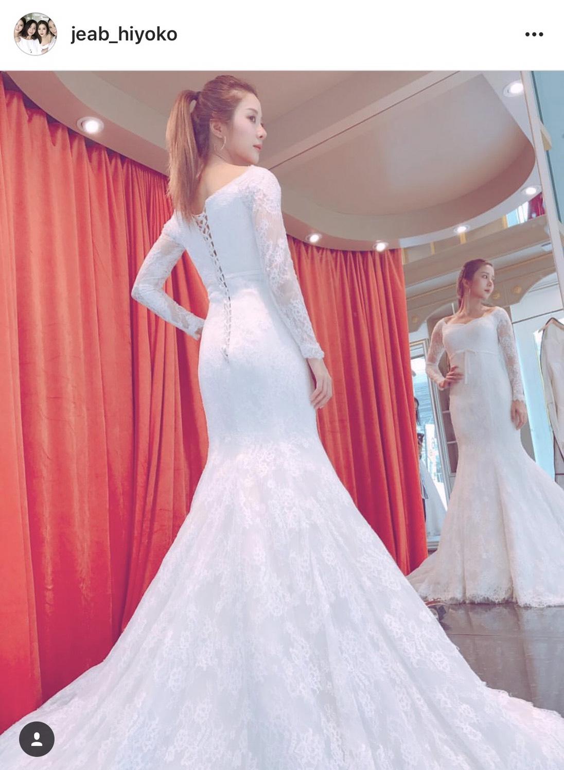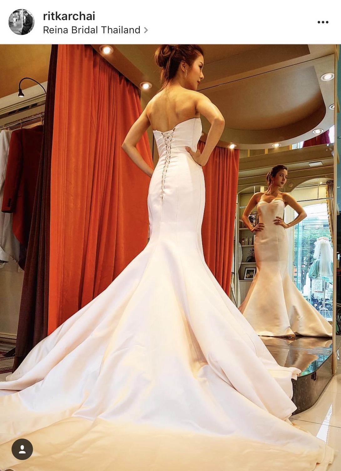 "ก็เป็นการลองชุดของงานนี้แหละค่ะ คนก็แซวและแสดงความยินดีล่วงหน้าก็ขอบคุณแต่รอสักพักค่ะ"