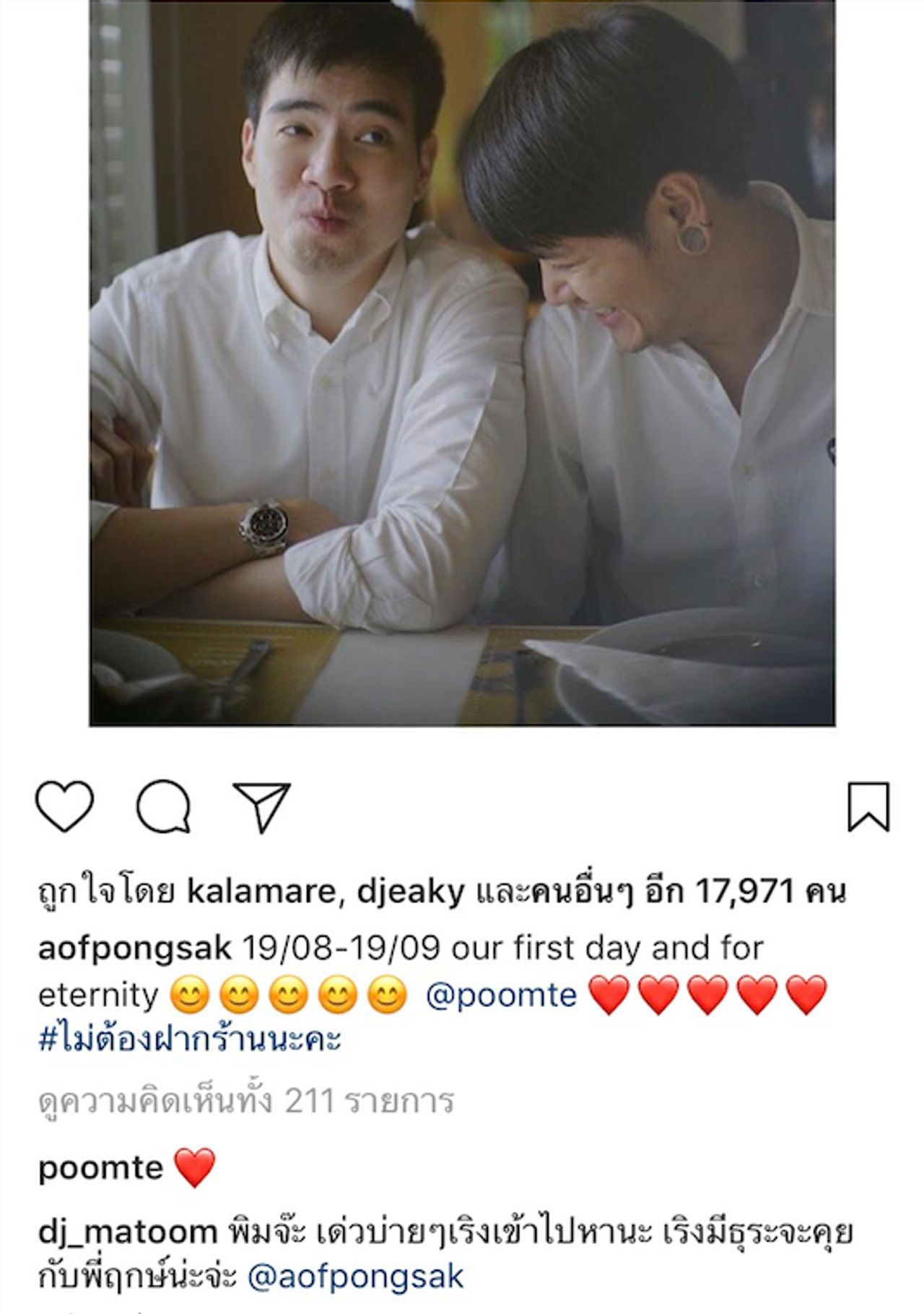 ล่าสุดเช้านี้ อ๊อฟ จัดให้ เปิดตัวแฟนหนุ่ม ภูมิ เตชะหรูวิจิตร ทายาทโรงแรมเอเชีย ถ่ายรูปคู่พร้อมแคปชั่น "19/08-19/09 our first day and for eternity @poomte " (19/08-19/09 วันแรกของของเราและตลอดไป)