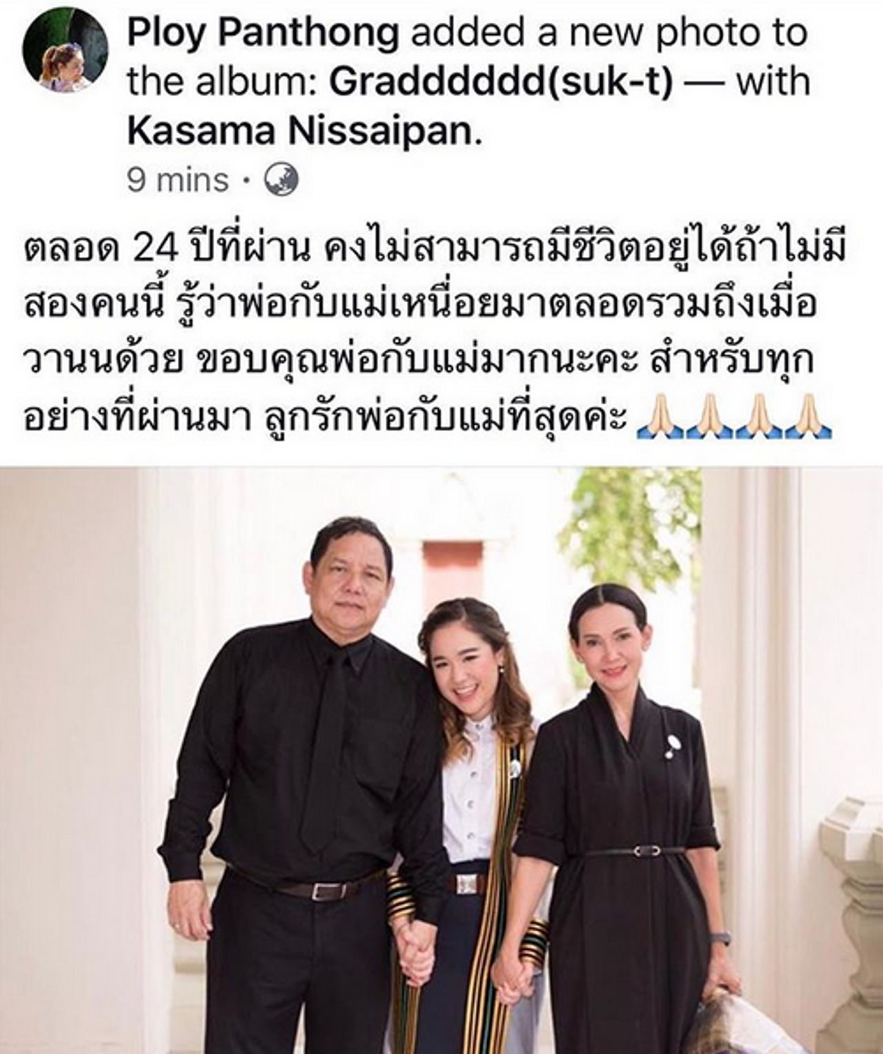 เป็นอีก 1 คนวงการบันเทิง ที่มีความสุขหลังจากที่ลูกสาว พลอย โสวิชญา ปานทอง ลูกสาวสุดที่รักของ ดี้ ปัทมา และ เอ๋ กษมา ที่คว้าใบปริญญาจากคณะแพทยศาสตร์ จุฬาลงกรณ์มหาวิทยาลัยมาครองได้สำเร็จ และในวันซ้อมรับพระราชทานปริญญาบัตร งานนี้คุณพ่อคุณแม่ขอจัดเต็มแต่งตัวสวยหล่อเพื่อมาแสดงความยินดีกับความสำเร็จของลูกสาว
