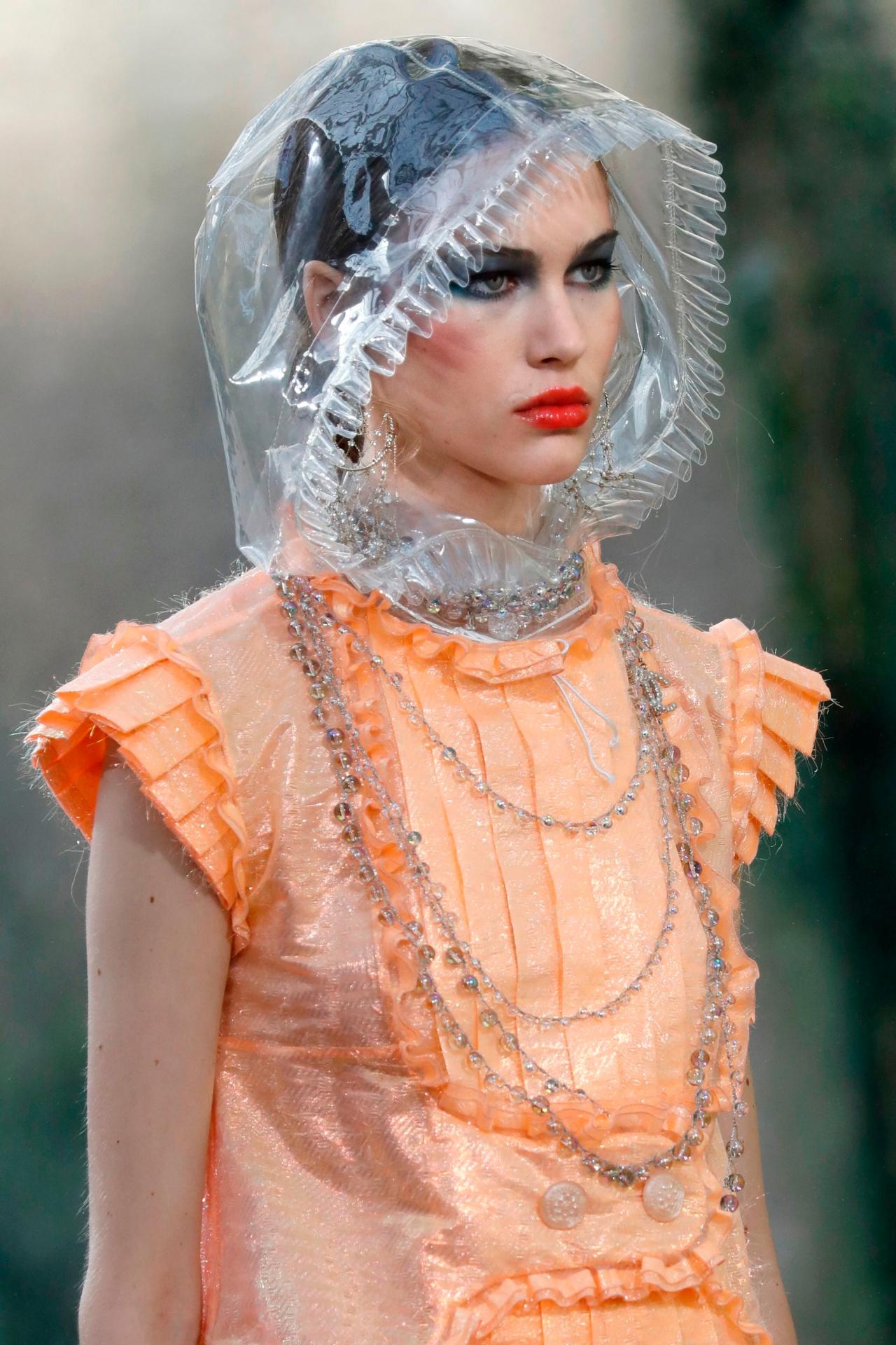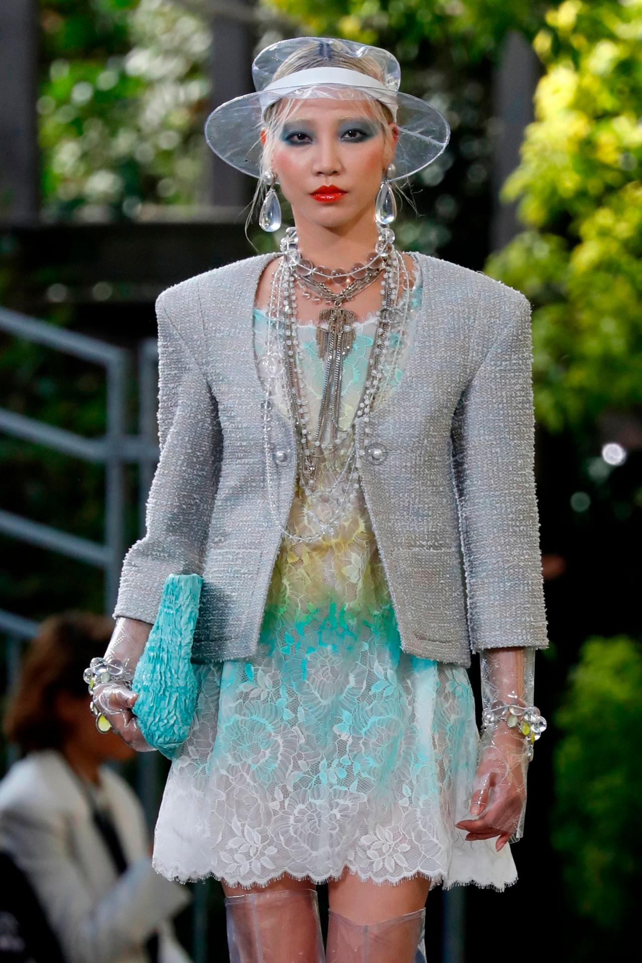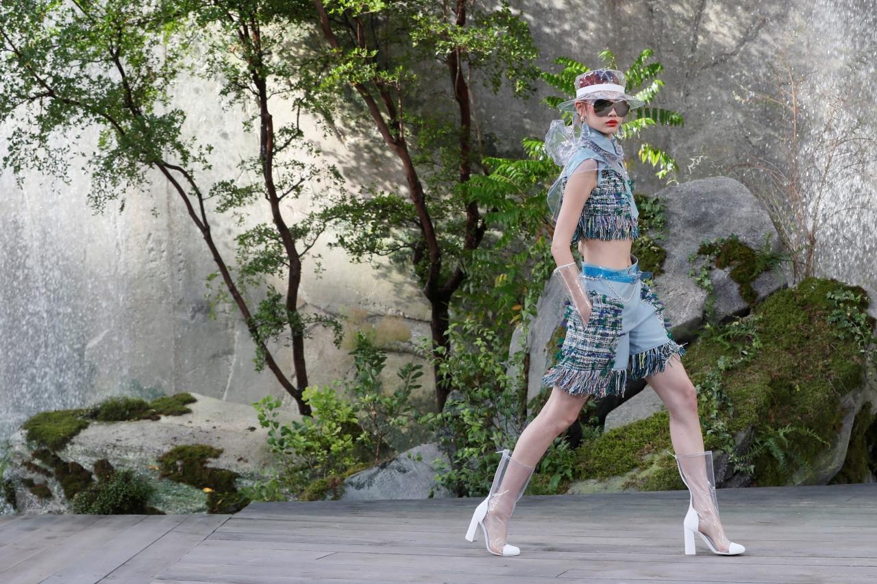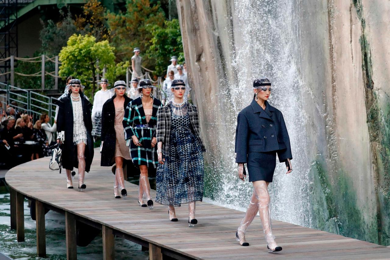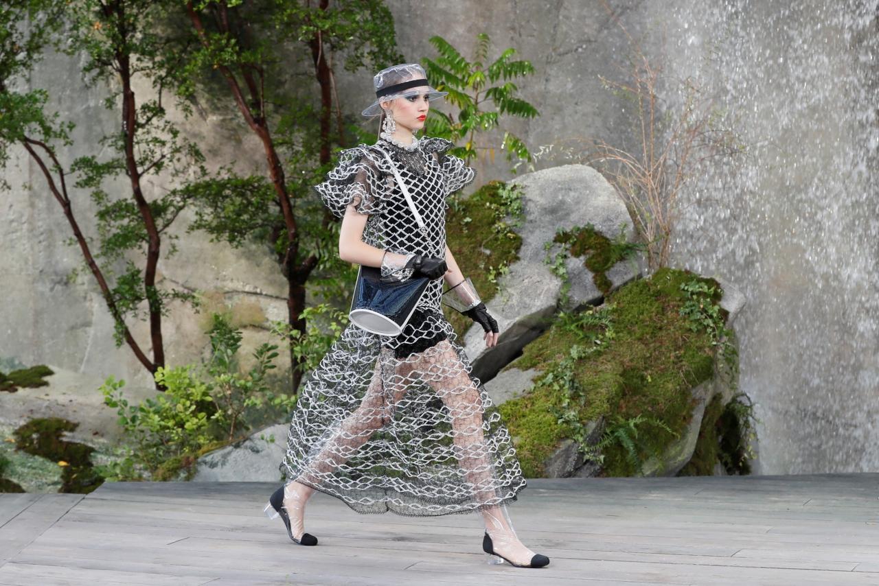 แฟชั่นเซตนี้ไม่ได้แปลกแหวกแนว หวือหวาอะไรมากมายจากรูปแบบเดิมๆ ของชาแนล ยังคงเน้นความโก้หรูสง่าดูดีมีสไตล์เป็นหลัก เหมาะกับหน้าฝนสุดๆ ทั้งหมวก ถุงมือ รองเท้า ล้วนทำมาจากพลาสติกโปร่งใสกันฝนได้ด้วยนะคะ คุณปู่คาร์ล พาลูกๆ หลานๆ หวนกลับไปสู่อ้อมกอดของธรรมชาติอันบริสุทธิ์ยิ่งใหญ่ ยกน้ำตก ต้นไม้ แท่นหิน มาเป็นรันเวย์ได้ตะลึงตาไม่น้อย ชุดทั้งหมดในโชว์นี้จะสวยมากสวยน้อยแค่ไหนนั้น รีบคลิกไปดูกันเลย.