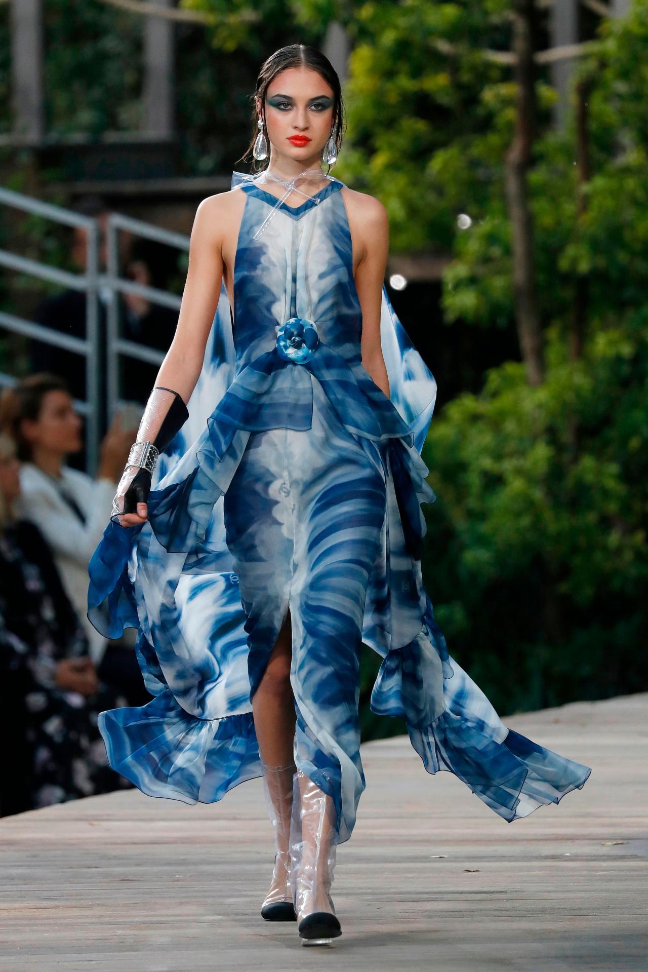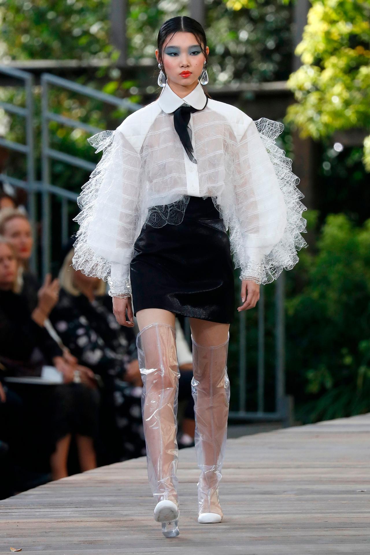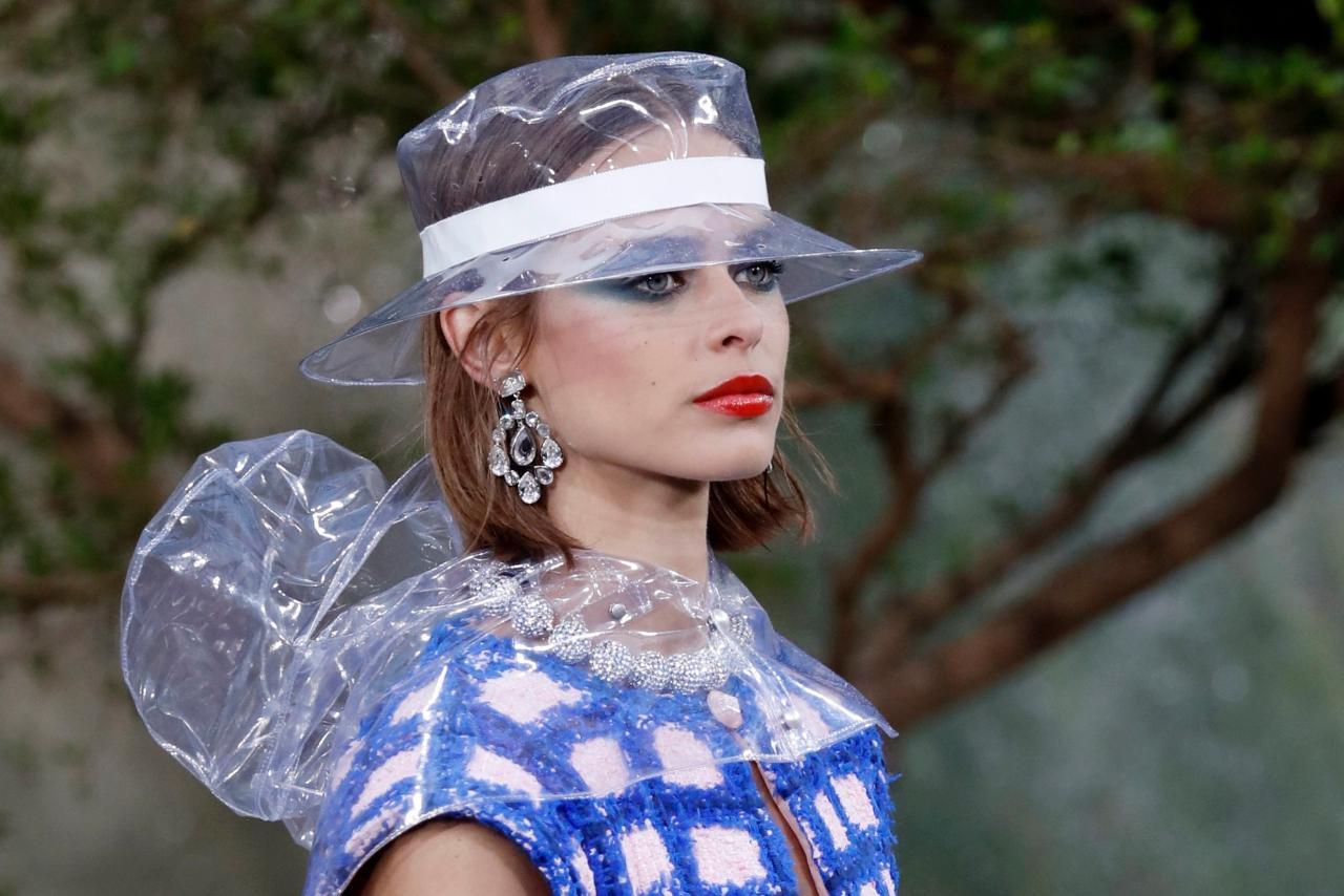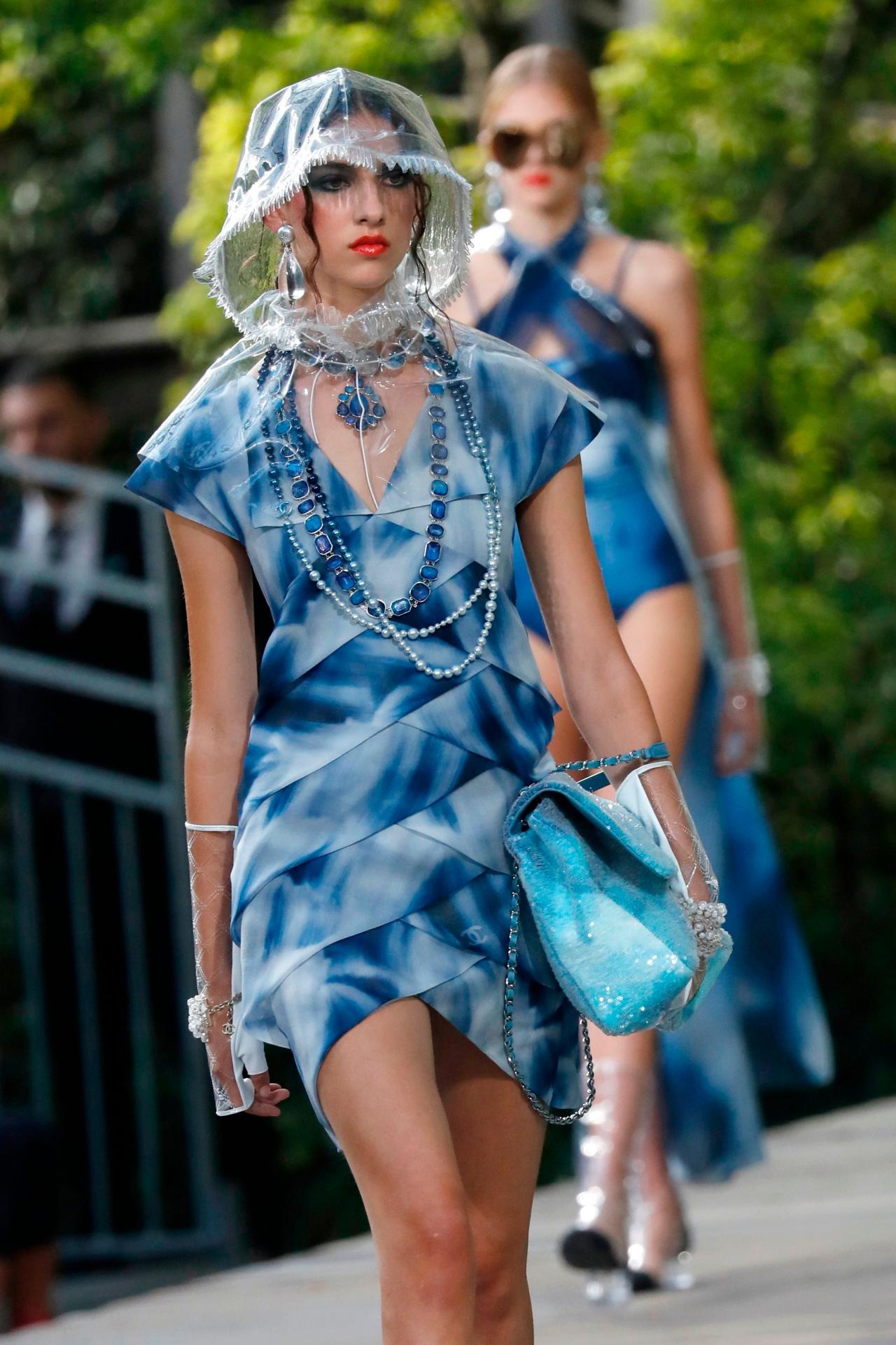 แฟชั่นเซตนี้ไม่ได้แปลกแหวกแนว หวือหวาอะไรมากมายจากรูปแบบเดิมๆ ของชาแนล ยังคงเน้นความโก้หรูสง่าดูดีมีสไตล์เป็นหลัก เหมาะกับหน้าฝนสุดๆ ทั้งหมวก ถุงมือ รองเท้า ล้วนทำมาจากพลาสติกโปร่งใสกันฝนได้ด้วยนะคะ คุณปู่คาร์ล พาลูกๆ หลานๆ หวนกลับไปสู่อ้อมกอดของธรรมชาติอันบริสุทธิ์ยิ่งใหญ่ ยกน้ำตก ต้นไม้ แท่นหิน มาเป็นรันเวย์ได้ตะลึงตาไม่น้อย ชุดทั้งหมดในโชว์นี้จะสวยมากสวยน้อยแค่ไหนนั้น รีบคลิกไปดูกันเลย.