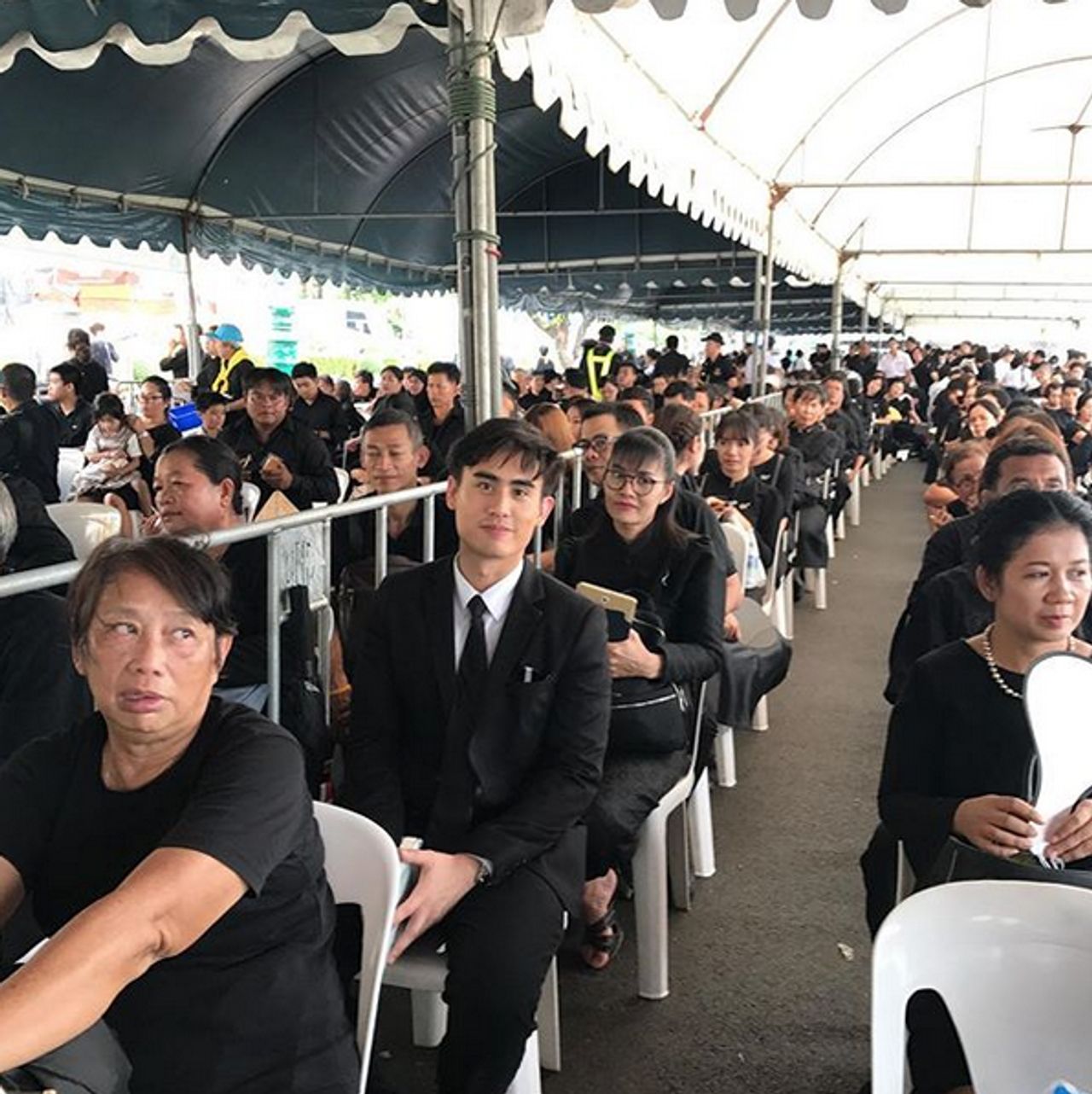 และนอกจากจะมีประชาชนคนธรรมดาแล้ว ก็ยังมีเหล่าคนบันเทิงที่พร้อมใจไปเข้าแถวต่อคิวเพื่อเข้ากราบถวายบังคมพระบรมศพอีกด้วย ไม่ว่าจะเป็นอดีตนางแบบชื่อดัง โย ยศวดี และพี่สาว เอ อัญชลี นักแสดงสาวจากช่อง 7 ไอซ์ อธิชนันท์ และผู้ประกาศข่าวจากช่อง 3 อย่าง พิภู พุ่มแก้ว ที่มาเข้าแถวเพื่อรอคิวเข้ากราบถวายบังคมพระบรมศพอย่างไม่ย่อท้อแม้ฝนจะตก แดดจะแรงแค่ไหนก็ตาม.