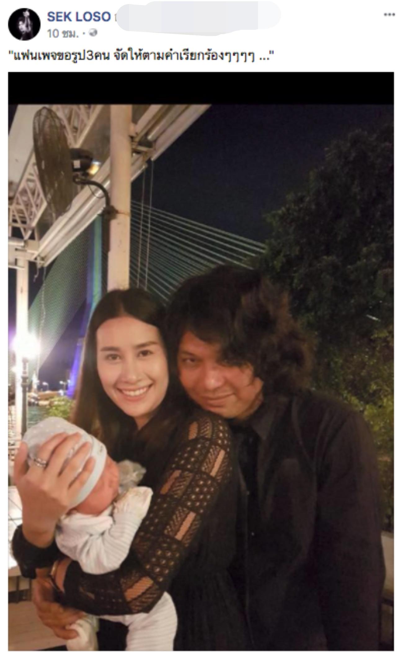 ยังคงมีกระแสจากโซเชียลมีเดียส่วนตัวของ เสก โลโซ ออกมาอย่างต่อเนื่อง เพราะร็อกเกอร์หนุ่มหัวใจสั่งมาโพสต์ตลอด ล่าสุดโพสต์รูปตัวเองกับแฟนสาวแซนวิชและลูกชาย น้องลีออง พร้อมแคปชั่น "แฟนเพจขอรูป3คน จัดให้ตามคำเรียกร้องๆๆๆๆ ..." จากนั้นก็โพสต์ภาพที่ แซนวิชอุ้มลูก และแคปชั่น "ใครด่าพ่อ_ุ เดี๋ยว_ุตบ ไ_้ฟายเอ๊ยยย {ฮาๆๆ}"