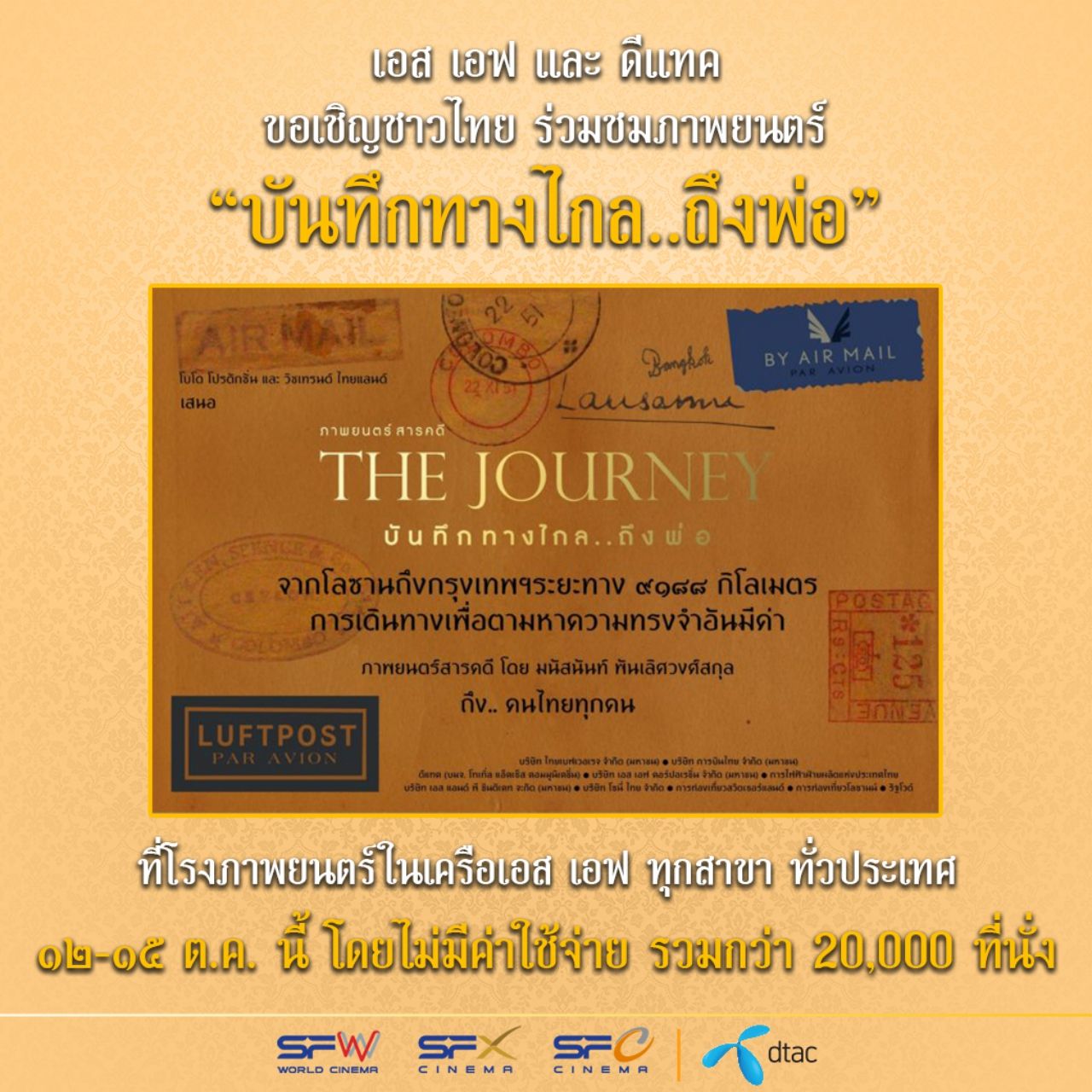บันทึกทางไกล...ถึงพ่อ รวบรวมการเดินทางของในหลวง รัชกาลที่ 9 ในปี พ.ศ. 2476-2494 ผ่านพระราชหัตถเลขา ไปรษณียบัตร รวมถึงภาพถ่ายฝีพระหัตถ์ วีดิทัศน์พระราชทานสัมภาษณ์ และการสัมภาษณ์บุคคลสำคัญที่เคยถวายงานพระองค์ เราชาวไทยไม่พลาดดูกันอยู่แล้ว บอกย้ำกันอีกทีว่าห้ามพลาด! ดูฟรี! (คลิกดูรอบฉาย)