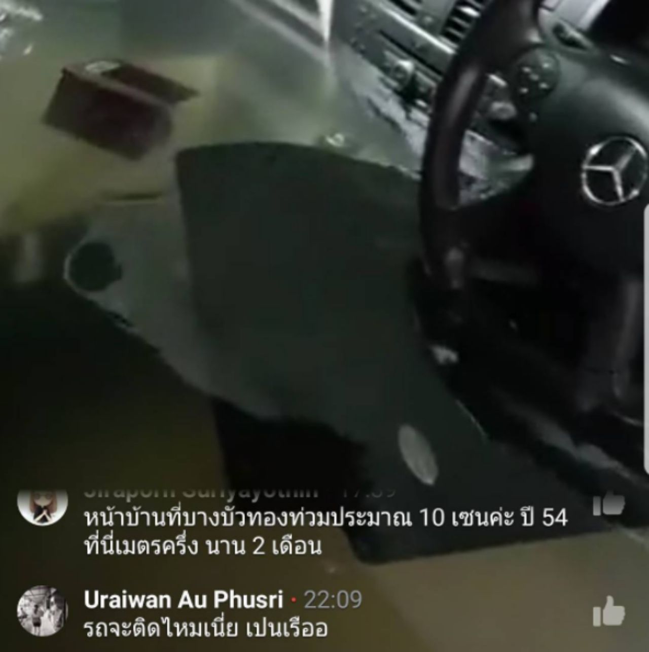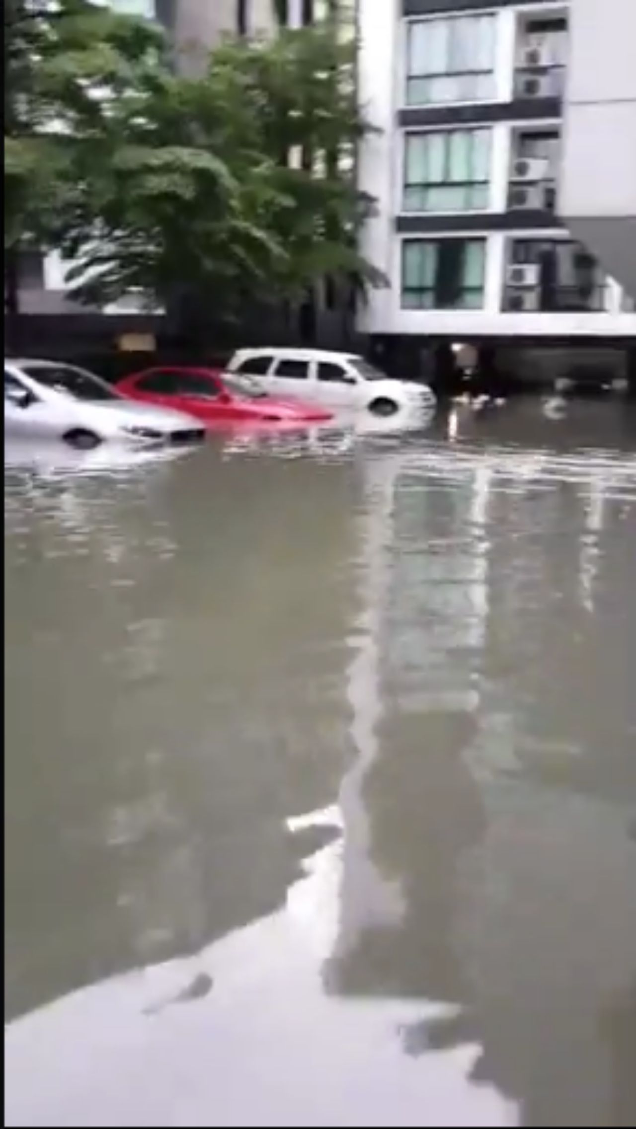 เนื่องจากภายในซอยก็ถูกน้ำท่วมขังเช่นเดียวกัน ซึ่งจากการสอบถามทราบว่า รปภ.พยายามมาแจ้งให้ผู้พักอาศัยไปเลื่อนรถ แต่เนื่องจากขณะนั้นเกิดฝนตกหนักและเป็นช่วงกลางดึกทำให้ไม่ได้ยิน สำหรับตัวเองยังโชคดีที่มีประกันชั้น 1 ป้องกันน้ำท่วม แต่เพื่อนร่วมคอนโดไม่มีในส่วนนี้ จึงจะต้องพูดคุยกับนิติบุคคลต่อไปว่าจะมีส่วนรับผิดชอบอย่างไรบ้าง.