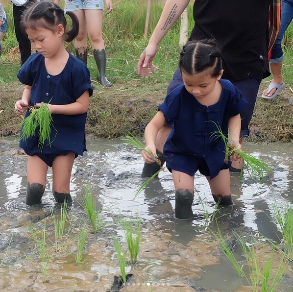 ถือว่าเป็นครอบครัวตัวอย่างอีกครอบครัวหนึ่ง เพราะล่าสุด คุณแม่ นานา ไรบีนา และคุณพ่อ เวย์ ไทยเทเนียม ได้พาลูกน้อย บีน่า-บรู๊คลิน ไปเรียนรู้นอกตำรากับอาชีพกระดูกสันหลังของชาติอย่างชาวนา ด้วยการลุยแปลงนาแบบจริงจัง