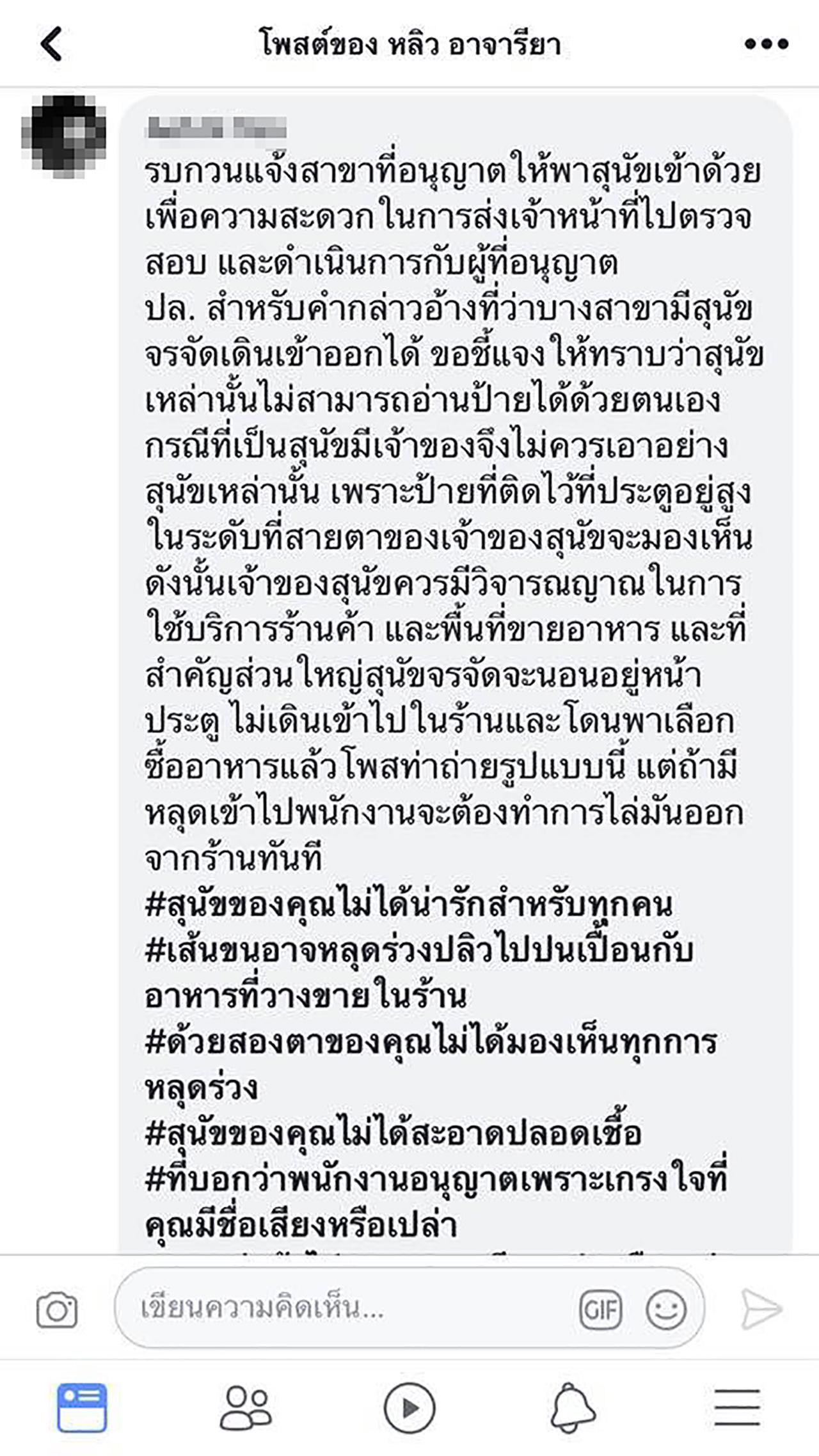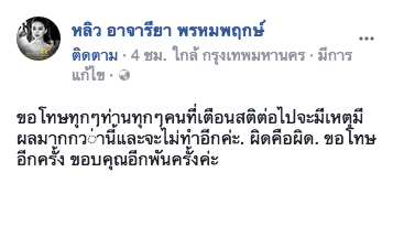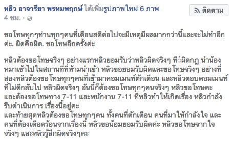 เป็นอีกคนที่เจอพิษชาวโซเชียลจนต้องออกมาน้อมรับความผิด สำหรับนักร้องสาว หลิว อาจารียา หลังจากที่เจ้าตัวได้โพสต์ภาพจูงน้องหมาเข้าไปเดินซื้อของในร้านสะดวกซื้อ ซึ่งหลังจากที่ภาพดังกล่าวเผยแพร่ออกไป สาวหลิวก็ถูกถล่มเละว่าทำพฤติกรรมที่ไม่เหมาะสม ทั้งๆ ที่มีป้ายห้ามนำสัตว์เลี้ยงเข้ามาในร้านสะดวกซื้อ