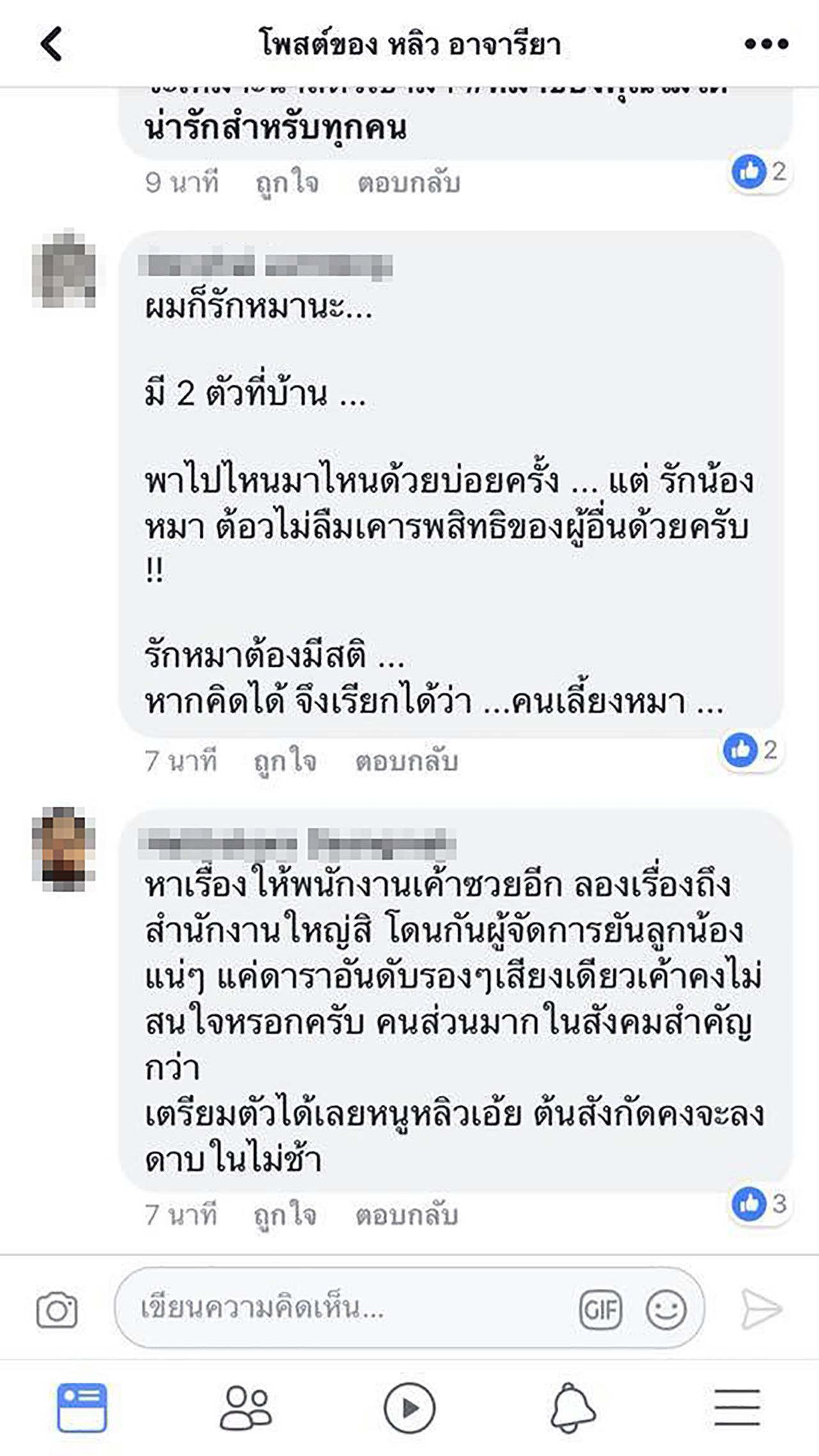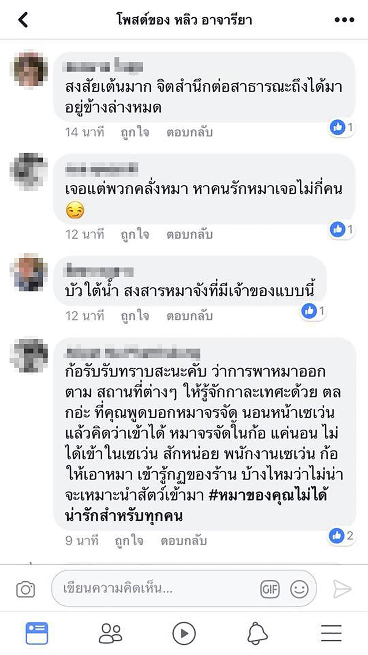แต่ก็ยังมีชาวเน็ตบางกลุ่มที่ยังคงวิจารณ์พฤติกรรมของนักร้องสาวอย่างต่อเนื่อง เพราะก่อนหน้านี้ สาวหลิวได้ออกมาบอกว่า สุนัขจรจัดยังนอนได้ ทำไมสุนัขของตนจะเข้าไม่ได้ จนคนเข้ามาคอมเมนต์มากมาย พร้อมติดแท็กว่า #หมาของคุณไม่ได้น่ารักสำหรับทุกคน