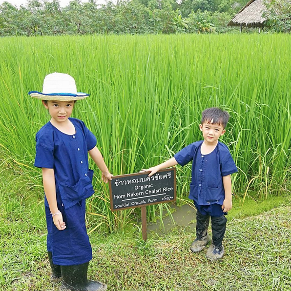 โดยงานนี้ ทั้งน้องณดาและน้องณดล ถูกจับให้ใส่ชุดม่อฮ่อม น่ารักทั้งพี่ทั้งน้องลุยธรรมชาติกันแบบสนุกสนาน ไม่ว่าจะเป็นการดำนา เก็บไข่เป็ดแบบสดๆ ในเล้า ทำเอาเด็กๆ และคุณแม่สนุกสนานไปกับการเรียนรู้ชีวิตแบบไทยๆ ในครั้งนี้ไม่น้อย ถือว่าเป็นอีกกิจกรรมดีๆ ที่จะได้สอนให้เด็กๆ ไม่ลืมรากเหง้าของความเป็นไทยไป