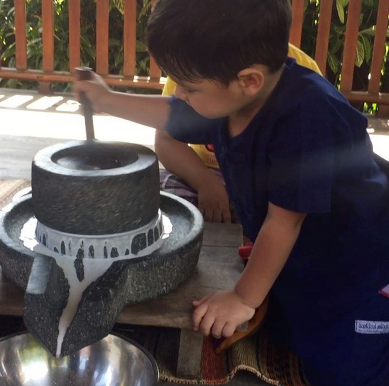 เป็นอีกหนึ่งคุณแม่ ที่ให้ลูกๆ ได้ไปเรียนรู้วิถีชีวิตรากเหง้าของคนไทยในสมัยก่อน โดยฮาน่า ทัศนาวลัย ภรรยาสุดที่รักของ ฮิวโก้ จุลจักร ได้พาลูกๆ ไปเรียนรู้วิถีชีวิตแบบบ้านๆ ในวันหยุดที่บ้านนาครูธานี