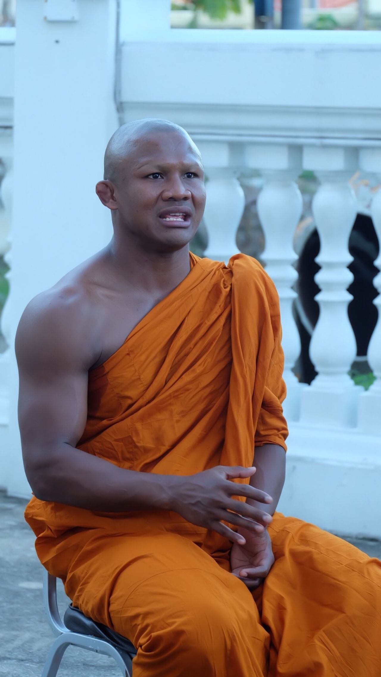 หลวงพี่บวชแล้วยังมีการออกกำลังกายอยู่มั้ย เพราะตอนเป็นฆราวาสเราเป็นนักมวยซึ่งออกกำลังกายตลอด? "จริงๆ การออกกำลังกายมาจากภายใน คือมีรอยยิ้มที่ร่าเริง แล้วเราบวชแค่ 9 วัน คือก่อนหน้านั้นเราก็ทำสะสมมาแล้ว" หลวงพี่เคยคิดว่าจะบวชไม่สึกเลยใช่มั้ย? "จริงแต่ยังทำหน้าที่ไม่เสร็จ ภารกิจที่เราต้องทำยังมีอยู่"