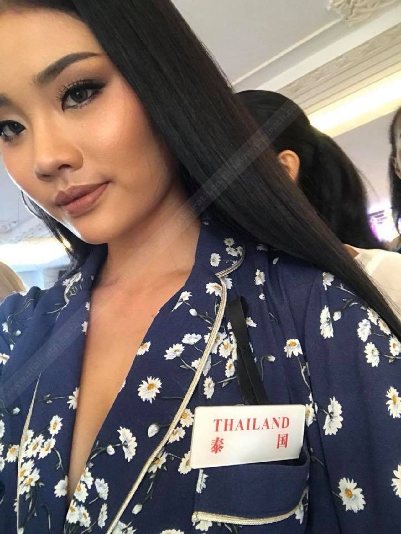 ไปถึงจีนแล้วรู้สึกอย่างไรบ้างคะ? "ก่อนจะมาถึงที่นี่ รู้สึกตื่นเต้นนิดหน่อยค่ะ หนูเดินทางมากับนางงามพม่า พอมาถึงสนามบินมาเจอกับเพื่อนๆ นางงามอีกหลายประเทศเลย ก็ยิ่งรู้สึกตื่นเต้นกว่าเดิมค่ะ" ปีนี้มีนางงามเข้าประกวดกี่ชาติ? "นับๆ ตอนนี้น่าจะ 120 กว่าประเทศได้ค่ะ" เริ่มมีแฟนคลับชาวจีนแล้วหรือยัง? "เพิ่งมาถึง ยังไม่มี รออยู่ค่ะ (หัวเราะ)"