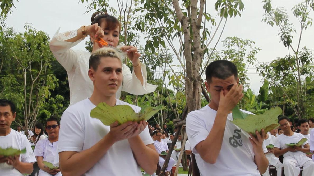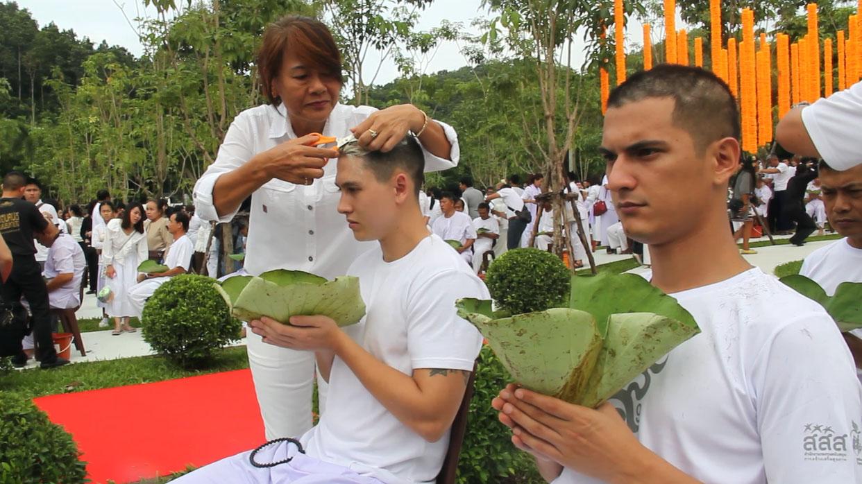 โดยระหว่างที่ครอบครัวร่วมปลงผม ชินมีอาการน้ำตาคลอ จากนั้นเวลา 14.00 น. ผู้เข้าร่วมอุปสมบททั้งหมดได้แยกย้ายเดินทางไปยังวัดต่างๆ 8 แห่ง มีวัดแก่นเหนือ วัดเกี๋ยงเหนือ วันเกี๋ยงใต้ วัดท่าข้ามศรีดอนชัย วัดสบสม วัดสถาน วัดทุ่งงิ้ว วัดหาดไคร้ เข้าอุโบสถทำพิธีบวชพระ และจำวัดที่ วัดใหม่ศรีร่มเย็น โดยจะร่วมตักบาตรพระใหม่ ณ สวนแห่งธรรม ในวันพรุ่งนี้เวลา 07.00 น.