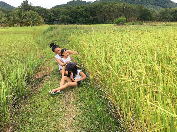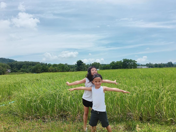 โดยสาวนานา ได้พาบีน่า-บรู๊คลิน ไปลุยท้องนาดูต้นข้าวและรวงข้าวของจริง ทำเอาเด็กๆ สนุกสนาน ตื่นตาและตื่นใจกับสิ่งที่ได้เห็นสุดๆ โดยสาวนานา ลงรูปพร้อมข้อความว่า “เพื่อเด็กๆ จะได้เข้าใจคำว่า พอมี พอกิน เลยเกิดทริปล่าสุดที่เกิดขึ้น ณ เกาะยาวน้อย” งานนี้ดูจากรูปที่คุณแม่นานาลงแล้วก็เห็นได้ชัดว่า ทั้งบีน่าและบรู๊คลินสนุกกับกิจกรรมลุยธรรมชาติในครั้งนี้มากๆ ถึงขั้นสาวบีน่าขอถอดรองเท้าเดินลุยพื้นหญ้าอย่างสนุกสนานไม่กลัวว่าเท้าจะสกปรกเลยแม้แต่นิดเดียว