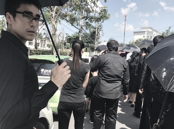 เริ่มต้นกันที่พระเอกหนุ่ม ณเดชน์ คูกิมิยะ พร้อมด้วยคุณแม่แก้ว ที่ร่วมเดินทางไปถวายดอกไม้จันทน์ที่วัดออเงินในช่วงบ่ายของวัน งานนี้แม้คนจะเยอะ แดดจะร้อนต้องต่อแถวเข้าคิวนานแค่ไหน แต่ 2 แม่ลูกก็ไม่ท้อ ยืนรออย่างเป็นระเบียบ ส่วน มาร์กี้ ราศรี และ ป๊อก ภัสสรกรณ์ พร้อมด้วยแม่เหน่ง คุณแม่ของนางเอกสาว ก็ได้ไปร่วมถวายดอกไม้จันทน์ ณ บริเวณลานหน้าห้างเซ็นทรัลเวิลด์