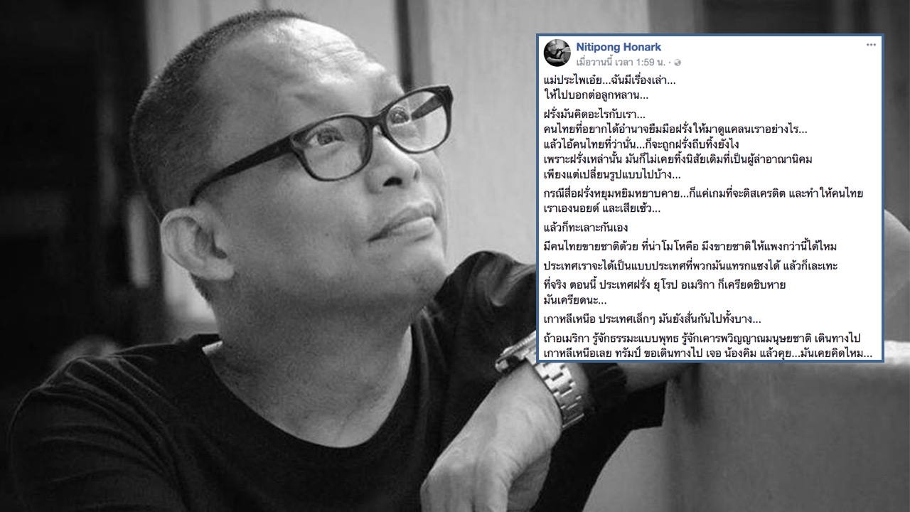 กรณีสื่อฝรั่งหยุมหยิมหยาบคาย ก็แค่เกมที่จะดิสเครดิต และทำให้คนไทยเราเองนอยด์และเสียเซลฟ์ แล้วก็ทะเลาะกันเอง มีคนไทยขายชาติด้วย ที่น่าโมโหคือ มึงขายชาติให้แพงกว่านี้ได้ไหม ประเทศเราจะได้เป็นแบบประเทศที่พวกมันแทรกแซงได้ แล้วก็เละเทะ