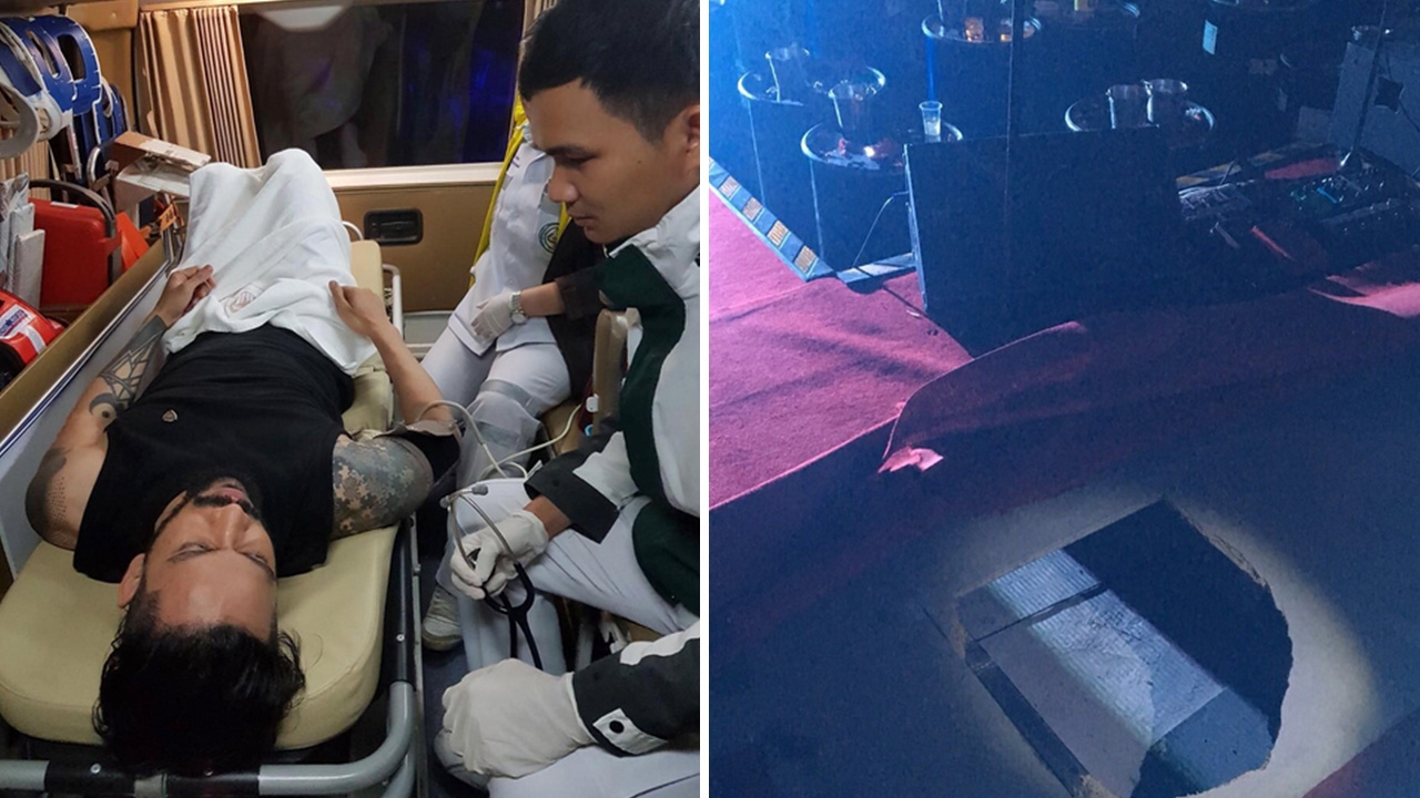 โดย อ๊อฟ บิ๊กแอส หนึ่งในสมาชิกของวงได้โพสต์ภาพพื้นเวทีทะลุเป็นรูใหญ่มากลงในอินสตาแกรม พร้อมระบุข้อความว่า ขออภัยชาวมหาสารคามทุกคนที่ร้าน Roof 99 ทีเล่นไม่จบ เหตุจากเวทีเกิดทะลุจังหวะที่พี่เจ๋งกระโดดลงมา ล่าสุดหมอบอกกระดูกไม่เป็นอะไร แต่คงต้องกลับไปตรวจเช็กกล้ามเนื้ออีกที ขอบคุณทุกคนที่เป็นห่วงครับ”